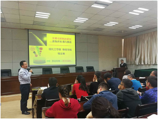 2018年4月8日,南京大學(xué)鄒志剛院士應(yīng)我校邀請(qǐng),蒞臨我校進(jìn)行學(xué)術(shù)交流活動(dòng)?;瘜W(xué)化工學(xué)院、材料科學(xué)與工程學(xué)院部分教師和學(xué)生參加了交流活動(dòng)。