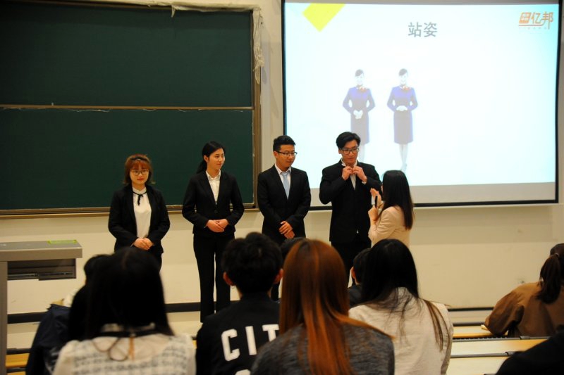 在接下來(lái)與四位學(xué)生干部的現(xiàn)場(chǎng)互動(dòng)中,代老師以詼諧幽默的語(yǔ)言指出他們?cè)趦x容、著裝禮儀、站姿坐姿禮儀、社交禮儀方面存在問題,并通過和現(xiàn)場(chǎng)同學(xué)的交流互動(dòng),生動(dòng)形象的為各位同學(xué)講述了社交禮儀的一些非常實(shí)用且必須注意的原則規(guī)范,希望各位同學(xué)能夠加強(qiáng)社交禮儀的自我修煉,不時(shí)贏得同學(xué)們的陣陣掌聲。大家認(rèn)真聽取代老師的講解,不時(shí)的記錄筆記、回答問題,整場(chǎng)講座氛圍熱烈,各個(gè)環(huán)節(jié)有序進(jìn)行。