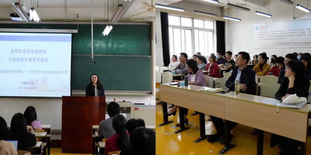為推進(jìn)我校區(qū)域國(guó)別學(xué)學(xué)科建設(shè),2024年4月9日下午,外國(guó)語(yǔ)學(xué)院邀請(qǐng)西北大學(xué)社科處處長(zhǎng)、中東研究所所長(zhǎng)、博士生導(dǎo)師韓志斌教授,在東方石油樓1104教室,做《區(qū)域國(guó)別學(xué)學(xué)科建設(shè)——以西北大學(xué)中東研究所為個(gè)案》專(zhuān)題報(bào)告。學(xué)院黨委書(shū)記田虹霞、副院長(zhǎng)劉輝、陳武、學(xué)院教師聆聽(tīng)了此次報(bào)告。報(bào)告由副院長(zhǎng)劉輝主持。