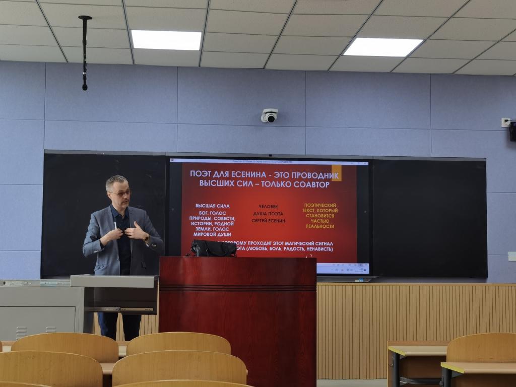 德米特里從語(yǔ)言符號(hào)學(xué)的基本概念開(kāi)始,引入俄羅斯文化的象征符號(hào)、象征形象,再引申至20世紀(jì)俄羅斯文學(xué),分析了俄羅斯著名詩(shī)人葉塞寧的詩(shī)歌。同時(shí)分享了自己的研究成果,和學(xué)生共同討論了俄語(yǔ)語(yǔ)言學(xué)習(xí)技巧。德米特里通過(guò)聲情并茂的音視頻、精心制作的圖片和細(xì)致深入的講解為學(xué)生們展現(xiàn)了俄羅斯的文化內(nèi)涵和民族精神;通過(guò)詩(shī)歌朗誦和文學(xué)作品分析,為學(xué)生們打開(kāi)了俄羅斯文學(xué)之窗,使學(xué)生領(lǐng)略到俄羅斯文學(xué)深沉感人的獨(dú)特魅力。
