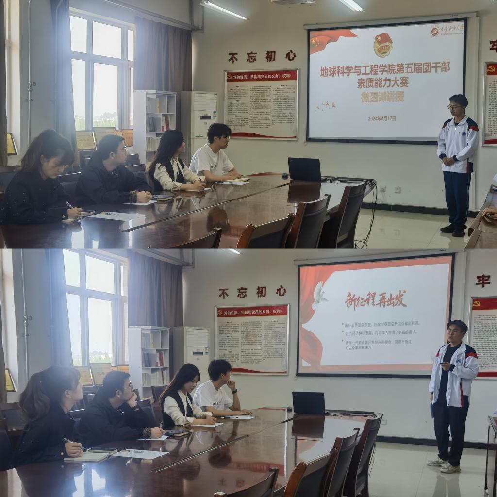 為深入學(xué)習(xí)貫徹習(xí)近平新時(shí)代中國特色社會(huì)主義思想、黨的二十大精神和學(xué)校第三次黨代會(huì)精神,不斷提高我院團(tuán)干部思想政治工作的理論水平、專業(yè)素養(yǎng)和工作能力,4月15日-4月17日,地球科學(xué)與工程學(xué)院團(tuán)委在博思樓B106、開物樓507舉辦第五屆團(tuán)干部素質(zhì)能力大賽院賽。
