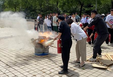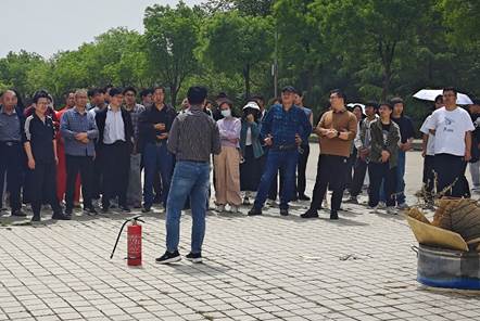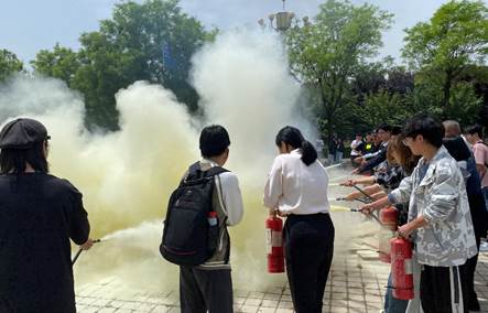 隨后,保衛(wèi)處副處長袁坤向全體參訓人員詳細講解滅火器材種類、使用方法等消防安全知識,并進行現(xiàn)場滅火示范操作。參訓師生根據(jù)動作要領完成滅火器滅火實操演練。