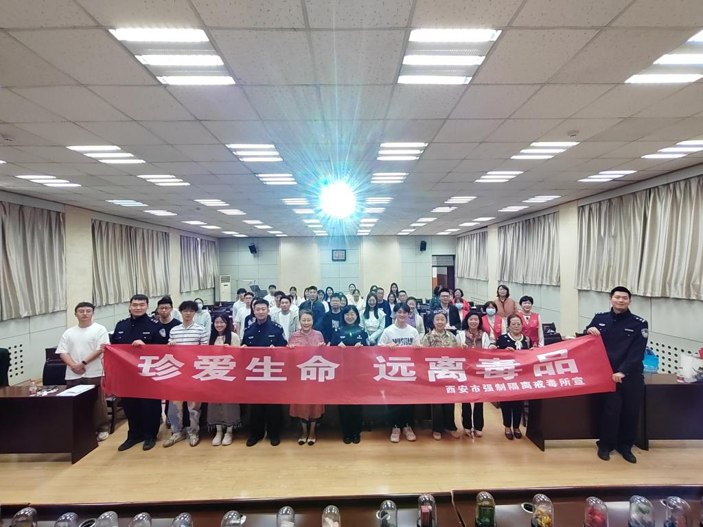 活動第二個環(huán)節(jié),由雁塔區(qū)文旅局向與會者播放了反詐宣傳片,提醒大家提高反詐意識。反詐宣傳片播放結(jié)束后,由西安市強制隔離戒毒所民警以情景劇形式向大家宣傳毒品的危害,同時展示了常見毒品的高度仿真模具,供與會者認(rèn)識和鑒別。