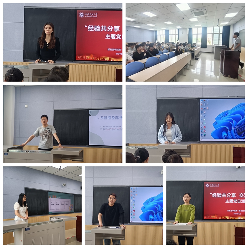 為實現(xiàn)校黨委“一校一策”選題“推動新能源學(xué)院高質(zhì)量發(fā)展”各項目標(biāo)任務(wù)高質(zhì)量完成,深化黨建引領(lǐng)業(yè)務(wù)發(fā)展,進(jìn)一步加強學(xué)院學(xué)風(fēng)建設(shè),正確引導(dǎo)2025屆學(xué)生明確考研就業(yè)形勢,做好個人發(fā)展規(guī)劃,5月8日-11日,新能源學(xué)院各學(xué)生黨支部組織開展“經(jīng)驗共分享,交流促成長”主題黨日活動,活動由各學(xué)生黨支部書記主持,2024屆考研就業(yè)典型及全體2021級學(xué)生參加。