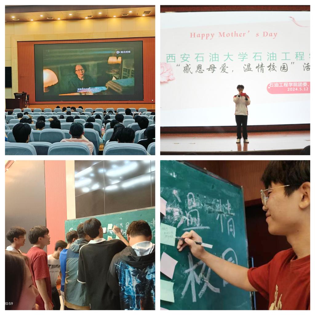 為讓學(xué)生更加深入地理解母愛(ài)的偉大與無(wú)私,同時(shí)也在忙碌的學(xué)習(xí)生活中找到片刻的寧?kù)o與感動(dòng),并進(jìn)一步培養(yǎng)大學(xué)生感恩意識(shí),促進(jìn)大學(xué)生身心健康發(fā)展,在母親節(jié)當(dāng)天,石油工程學(xué)院在弘石報(bào)告廳開(kāi)展了心理健康月系列活動(dòng)之“感恩母愛(ài),溫情校園”母親節(jié)主題觀影活動(dòng)。本次活動(dòng)共有西安石油大學(xué)本科生及研究生300余人參加。