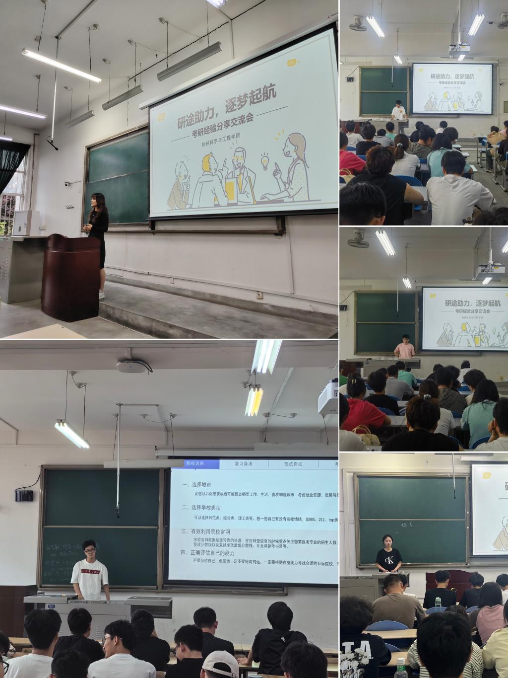 為充分調(diào)動(dòng)學(xué)院學(xué)生考研積極性,進(jìn)一步營造濃厚的考研氛圍,5月14日—5月15日,地球科學(xué)與工程學(xué)院在鄠邑校區(qū)A234、A235、A316等教室舉辦“研途助力,逐夢起航”考研經(jīng)驗(yàn)分享交流會(huì)。本次會(huì)議共邀請到42名2020級優(yōu)秀考研學(xué)生代表分享考研經(jīng)驗(yàn),學(xué)院400余名同學(xué)參會(huì)。會(huì)議由各年級輔導(dǎo)員主持。