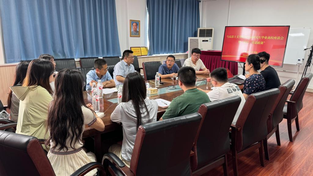 6月19日上午,馬克思主義學(xué)院在雁塔校區(qū)華油能源樓818會(huì)議室舉辦2024屆研究生畢業(yè)生座談會(huì)暨“最后一堂思政課”。學(xué)院黨總支書記、副院長(zhǎng)張偉,院長(zhǎng)張海濤,黨總支副書記、副院長(zhǎng)董春詩(shī),畢業(yè)生代表及輔導(dǎo)員童玲參會(huì),會(huì)議由董春詩(shī)主持。