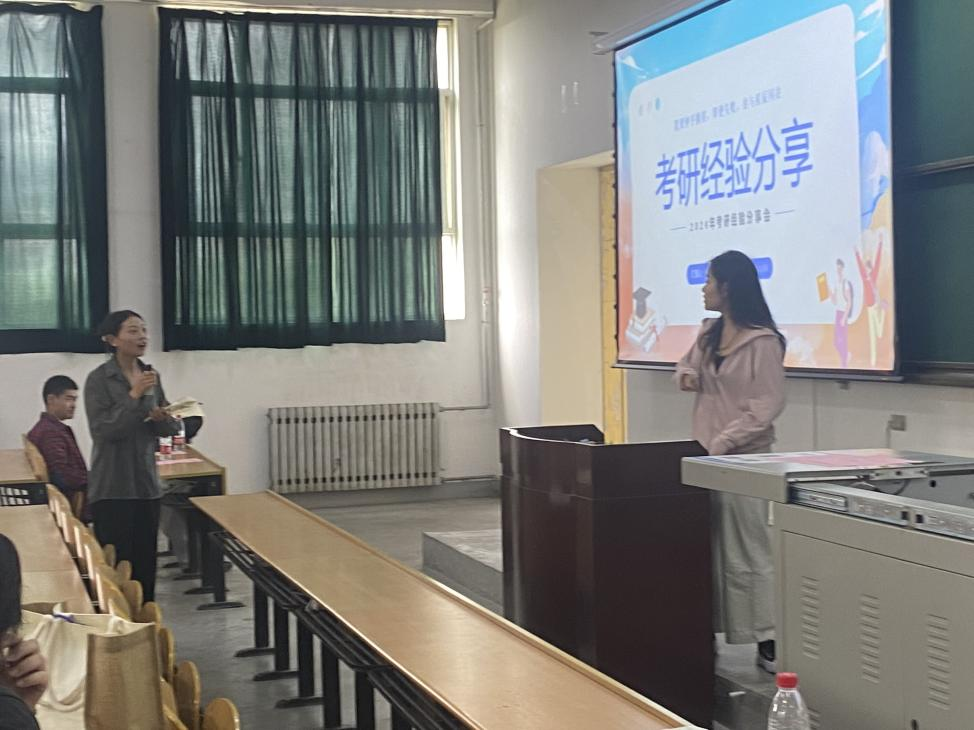 會議第二階段,本校在讀研究生的趙佳怡和李昌隆同學(xué)依次向?qū)W弟學(xué)妹們分享了他們在考研擇校、備考、復(fù)試等方面的經(jīng)驗(yàn),為同學(xué)們提供了參考和借鑒。