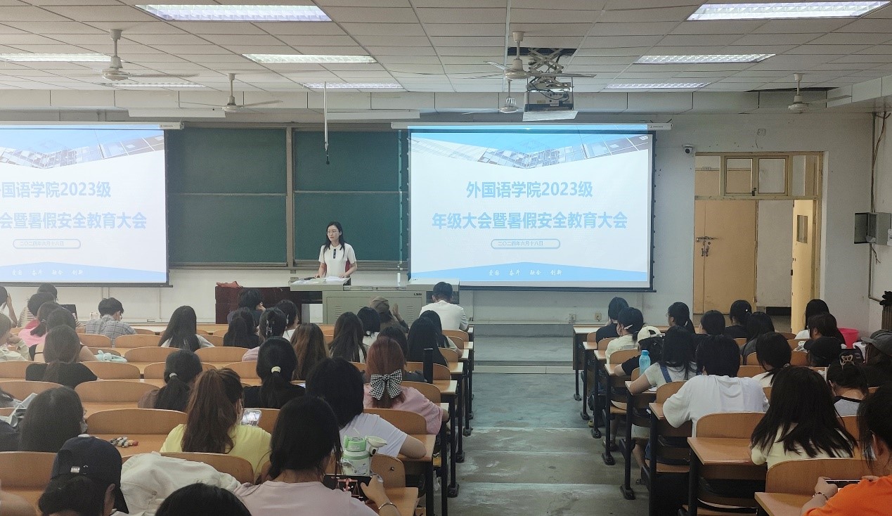 為進一步做好暑期學(xué)生安全教育管理工作,提高學(xué)生安全意識,根據(jù)學(xué)校和學(xué)院工作安排部署,近日,外國語學(xué)院各年級分別召開暑期安全教育年級大會。
