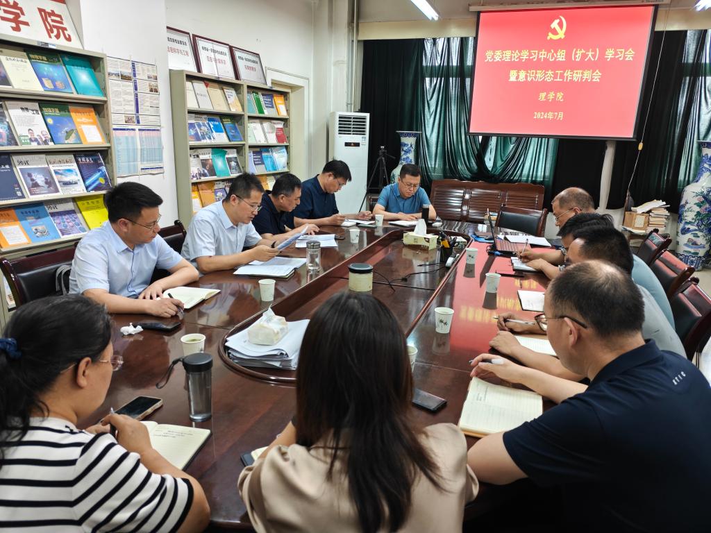 7月3日下午,理學(xué)院黨委在雁塔校區(qū)東方石油樓501室召開理論學(xué)習(xí)中心組(擴(kuò)大)學(xué)習(xí)會(huì)暨意識(shí)形態(tài)工作研判會(huì),學(xué)院黨委理論學(xué)習(xí)中心組成員、教工黨支部書記參加會(huì)議,會(huì)議由學(xué)院黨委書記席利哲主持。