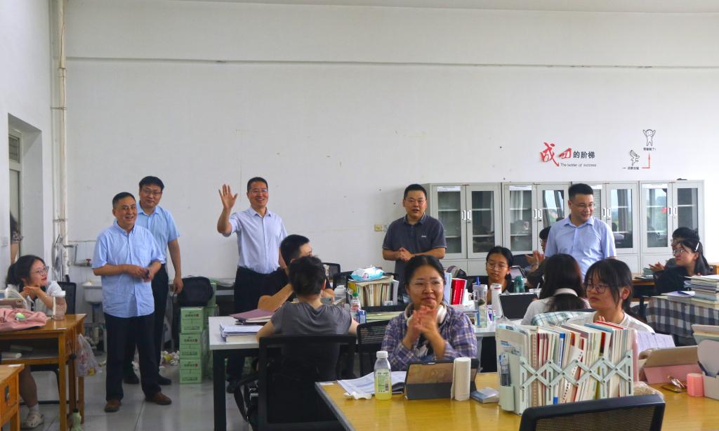 為了深入了解暑期考研留校學(xué)生的思想、學(xué)習(xí)和生活狀況,切實(shí)做好留校學(xué)生的安全管理和教育服務(wù)工作,7月24日上午,理學(xué)院黨委書記席利哲,院長(zhǎng)傅海威,副書記楊富民,副院長(zhǎng)陳國祥,教師代表張旋,輔導(dǎo)員龐波一行前往鄠邑校區(qū)考研自習(xí)室開展了慰問活動(dòng),為留校學(xué)生送去了溫暖與關(guān)懷。