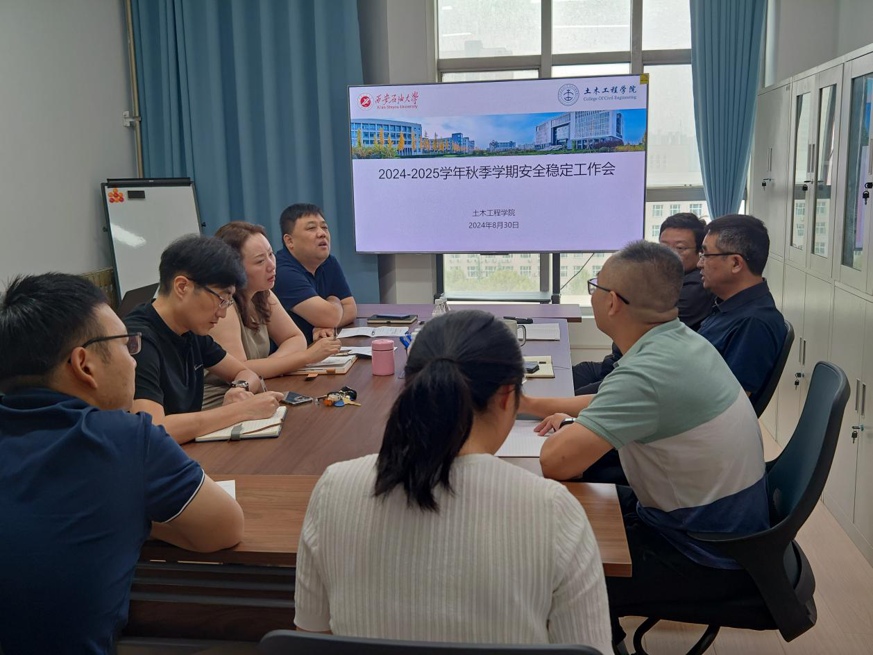 為進(jìn)一步強(qiáng)化校園安全意識,扎實(shí)做好師生安全工作,確保秋季開學(xué)工作平穩(wěn)有序,8月30日上午,土木工程學(xué)院在雁塔校區(qū)東方石油樓1105召開2024-2025學(xué)年秋季學(xué)期安全穩(wěn)定工作會(huì)。學(xué)院領(lǐng)導(dǎo)班子成員、各科室及實(shí)驗(yàn)中心負(fù)責(zé)人參加會(huì)議,會(huì)議由學(xué)院黨委書記、副院長賈莉娜主持。