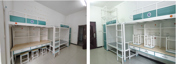9.學(xué)生公寓改造。鄠邑校區(qū)7-11號(hào)學(xué)生公寓樓公共區(qū)域、部分畢業(yè)生宿舍墻面粉刷及設(shè)施維修,約24465.24平方米。改造后,不僅提升了樓體的美觀度,更為同學(xué)們提供了更加舒適的學(xué)習(xí)和生活環(huán)境。為了提升2024級(jí)新生宿舍儲(chǔ)物空間,后勤處暑期購(gòu)置并安裝了834套行李架。每套可容納四個(gè)大行李箱,采用上下雙層設(shè)計(jì),二氧化碳保護(hù)焊接,表面經(jīng)多重工藝處理,環(huán)保健康,無異味甲醛。鄠邑校區(qū)1至4號(hào)公寓樓西側(cè)新建了電動(dòng)自行車停車棚及充電樁,有效緩解了周邊亂停亂放和充電樁不足問題。車棚采用10×10厘米方鋼結(jié)構(gòu),頂棚為藍(lán)色隔熱陽光板,安全穩(wěn)固,外觀美觀。車棚總面積380平方米,新增144個(gè)充電端口。