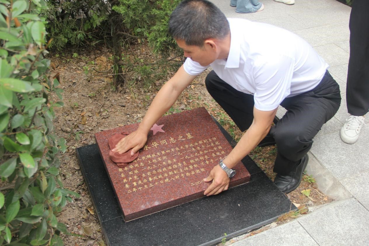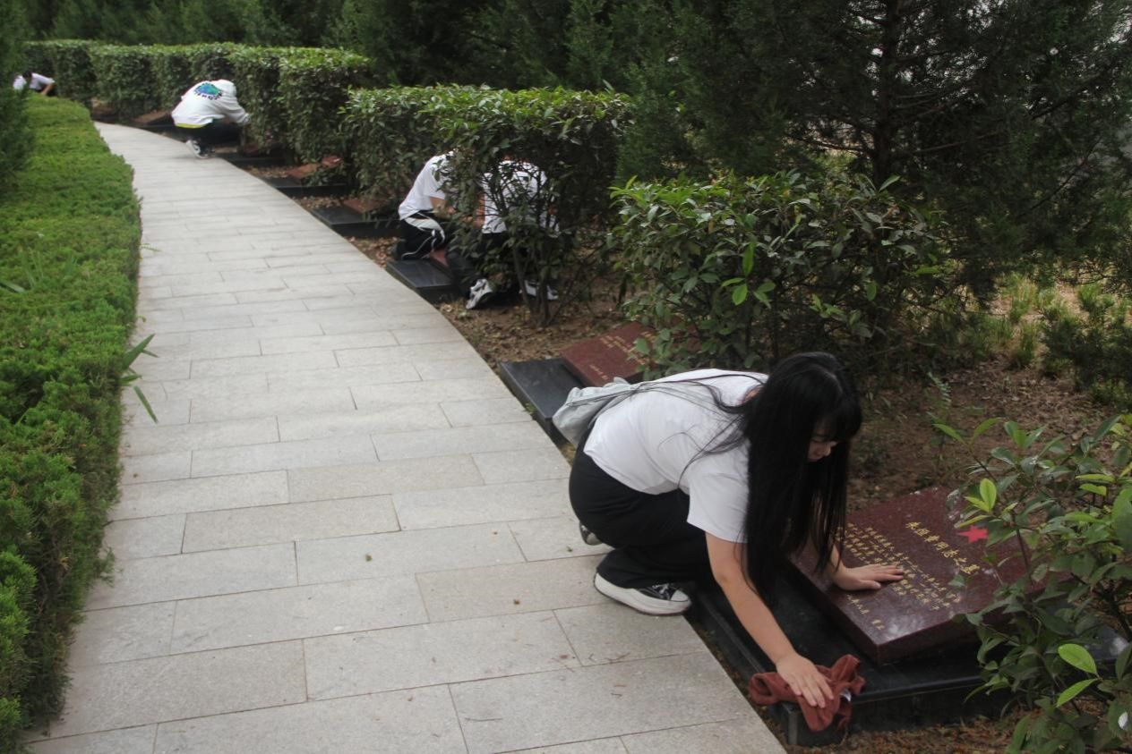 活動第三項,全體師生擦拭陵園烈士墓碑。大家懷著崇敬的心情,徒手清理墓碑周圍的雜草和垃圾,認真擦拭所有烈士墓碑,讓墓碑一塵不染,以此來表達對烈士偉大精神的深切思念和緬懷。