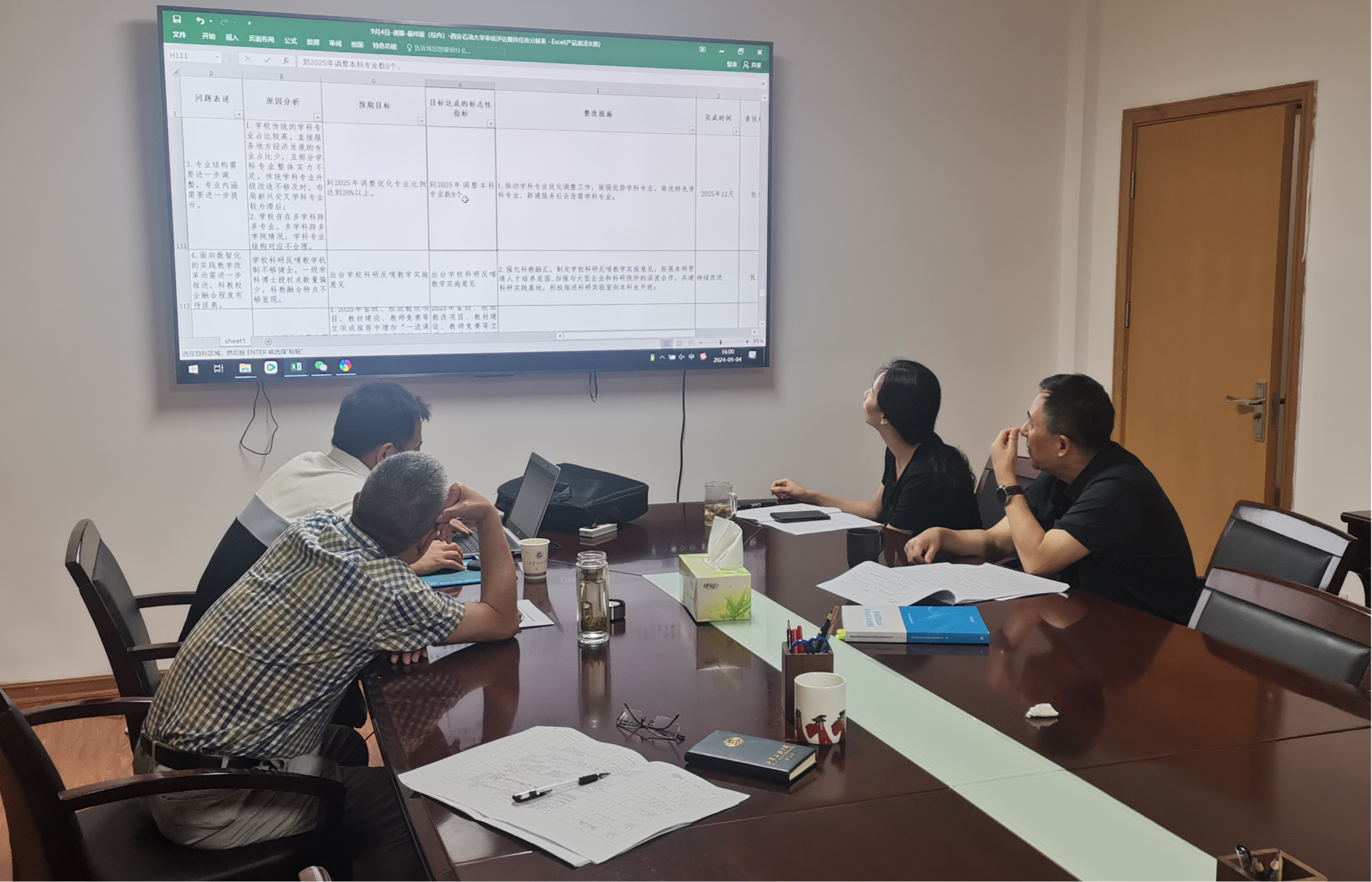 2024年4月29日至5月31日,我校進(jìn)行了本科教育教學(xué)審核評估專家組線上評估及入??疾煸u估。專家組在審核評估報告中充分肯定學(xué)校本科教育教學(xué)的同時,指出本科教育教學(xué)工作中存在的問題。審核評估線上及入??疾煸u估只是審核評估的上半段,最重要的是整改工作,整改工作的好壞對學(xué)校全面深化教育教學(xué)綜合改革,健全質(zhì)量保障體系,提高學(xué)校人才培養(yǎng)質(zhì)量,引導(dǎo)學(xué)校特色發(fā)展、內(nèi)涵發(fā)展具有重要意義。7月24至9月1日,組織各主辦單位對整改任務(wù)落實清單進(jìn)行了9次修改和意見征求;起草《西安石油大學(xué)本科教育教學(xué)審核評估整改方案》《西安石油大學(xué)本科教育教學(xué)審核評估整改工作實施方案》,于7月23日至9月1日,組織各單位進(jìn)行了6次意見征求和修改工作。9月4日,將整改方案及任務(wù)落實清單提請校長辦公會審議。9月9日,將如期向省教育廳及中國西部高等教育評估中心提交學(xué)校整改方案。