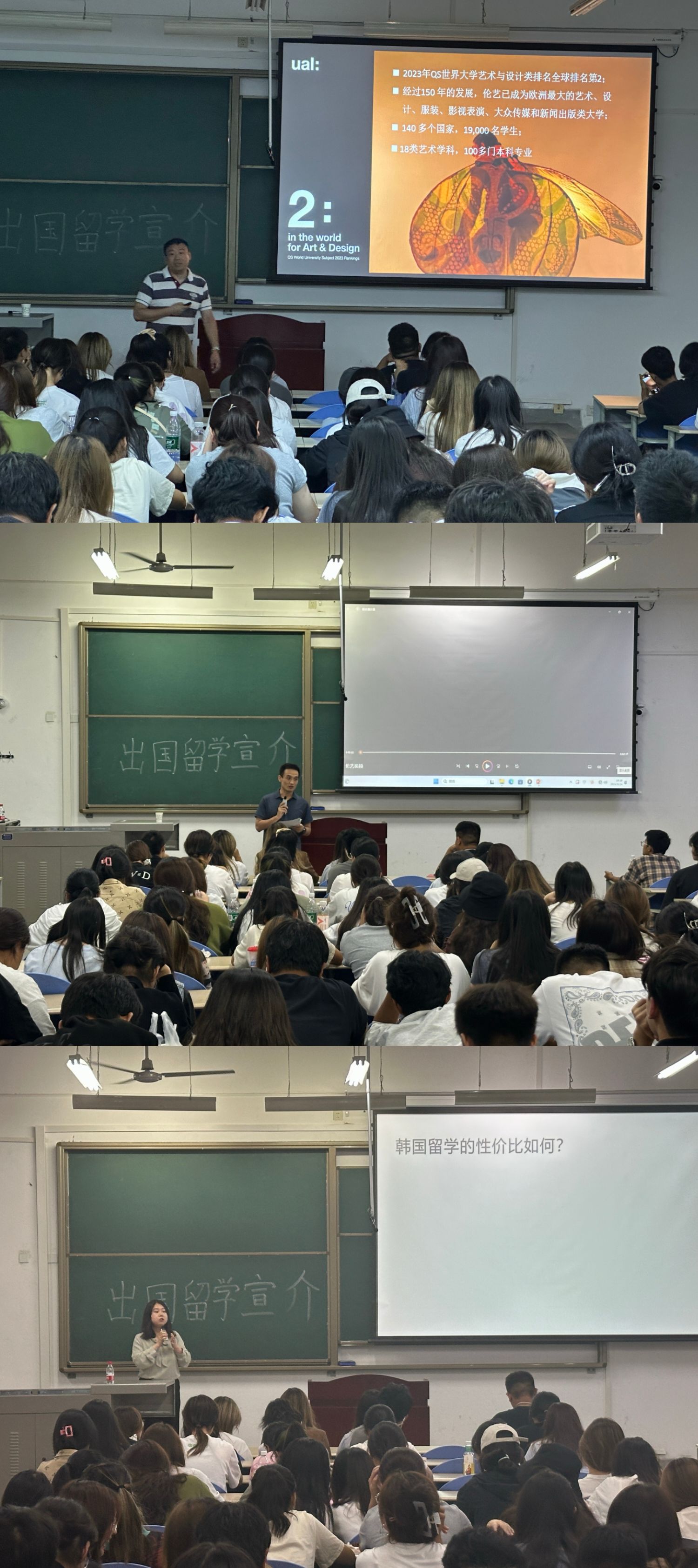 隨后,國際合作與交流處、國際教育學院安排多位熱門留學項目的負責人介紹了相關項目的具體政策安排、留學的流程和要求。在場老師對英國、美國、澳洲、韓國等部分海外留學熱門國家和地區(qū)的留學時間、費用以及語言要求等方面的要點進行了一一解讀?,F(xiàn)場還詳細介紹了延世大學、漢陽大學、淑明女子大學等海外高校留學項目的內容,并為學生們在選專業(yè)方面提供了寶貴的建議。各位老師們與學生進行熱烈的互動交流,解答學生們的疑惑與困惑。