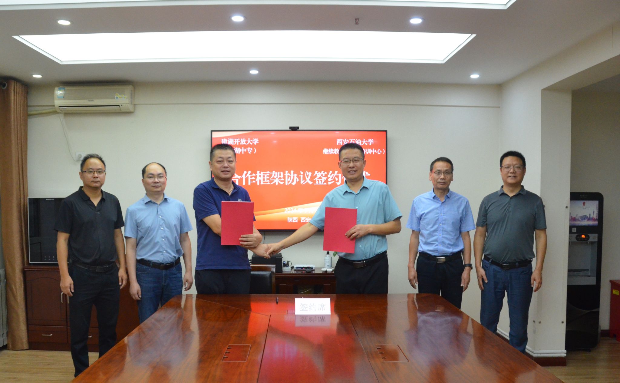 9月27日下午,繼續(xù)教育學(xué)院(培訓(xùn)中心)與建湖開放大學(xué)簽署合作框架協(xié)議。繼續(xù)教育學(xué)院黨總支書記張凌寒、副院長(zhǎng)劉小波,建湖開放大學(xué)黨委書記朱長(zhǎng)安、培訓(xùn)處主任凌紅兵、繼續(xù)教育學(xué)院主任管茂年出席簽約儀式。我校繼續(xù)教育學(xué)院院長(zhǎng)林紅先主持簽約儀式。