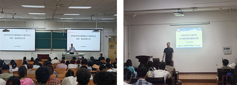 為引導(dǎo)2025屆畢業(yè)生切實(shí)了解當(dāng)前考研就業(yè)形勢(shì),進(jìn)一步強(qiáng)化畢業(yè)生職業(yè)生涯規(guī)劃能力,引導(dǎo)學(xué)生樹立正確的成才觀、職業(yè)觀、就業(yè)觀,推動(dòng)畢業(yè)生就業(yè)升學(xué)工作。材料科學(xué)與工程學(xué)院分別于9月24日在雁塔校區(qū)第四實(shí)驗(yàn)樓302和9月26日在鄠邑校區(qū)博覽樓239教室召開2025屆畢業(yè)生升學(xué)、就業(yè)再動(dòng)員大會(huì)。學(xué)院黨委副書記張?jiān)谱俗鲃?dòng)員講話,100余名碩士研究生和260余名本科畢業(yè)生參加,會(huì)議由輔導(dǎo)員宋二鵬和周鑫主持。