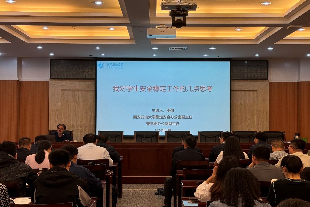 9月29日上午,學校穩(wěn)定安全辦公室副主任兼黨委辦公室副主任李強在鄠邑校區(qū)圖書館第一會議室作學生安全穩(wěn)定工作專題培訓,學校全體輔導員參加培訓,學生工作部副部長畢軼慧主持會議。