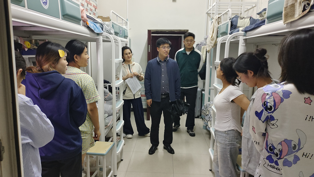 一次查訪,深化安全穩(wěn)定成果。9月29日晚,黨委副書記張浩然帶領(lǐng)各年級(jí)輔導(dǎo)員深入學(xué)生宿舍,特別是重點(diǎn)關(guān)注學(xué)生宿舍,詳細(xì)詢問(wèn)了學(xué)生們近期的思想動(dòng)態(tài),關(guān)心大家的學(xué)業(yè)、生活情況,還特別關(guān)注了學(xué)生的假期去向,鼓勵(lì)大家合理規(guī)劃假期生活,確保安全出行。通過(guò)面對(duì)面的交流,不僅拉近了師生間的距離,更讓學(xué)生感受到了來(lái)自學(xué)校的溫暖與關(guān)懷,進(jìn)一步增強(qiáng)了學(xué)生遵守安全規(guī)定的自覺性。