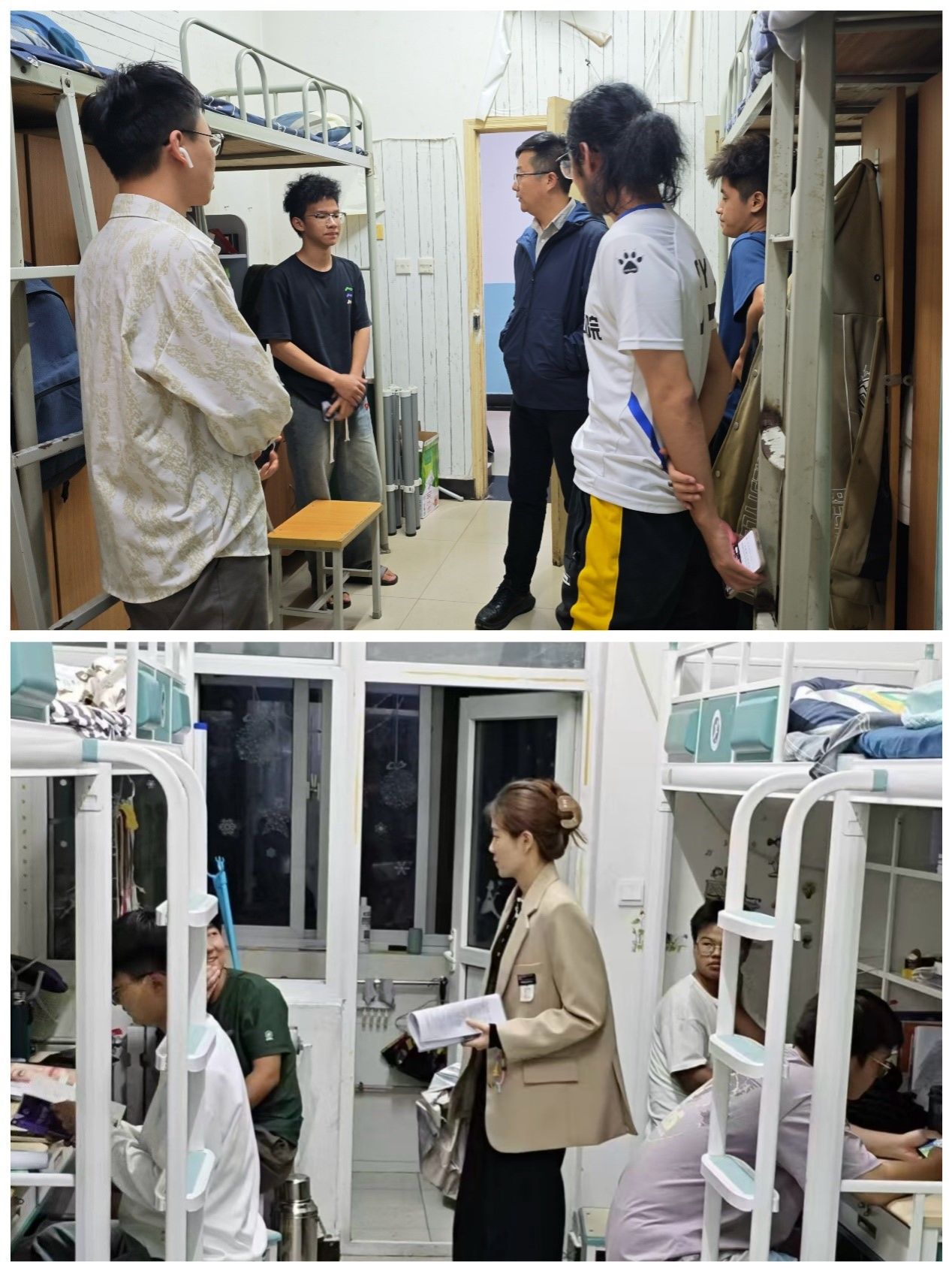 ——深入宿舍走訪。29日晚,學(xué)院黨委副書(shū)記劉煒航和各年級(jí)輔導(dǎo)員深入學(xué)生宿舍,與學(xué)生進(jìn)行親切交談,詳細(xì)了解學(xué)生假期去向以及日常學(xué)習(xí)生活的實(shí)際困難,并就假期宿舍安全、人身安全、財(cái)產(chǎn)安全、交通安全、網(wǎng)絡(luò)安全等方面提出了具體要求,叮囑同學(xué)們嚴(yán)格遵守學(xué)校公寓管理相關(guān)規(guī)定,提高安全防范意識(shí),樹(shù)立良好的生活習(xí)慣,共同營(yíng)造安全、舒適和諧的住宿環(huán)境。