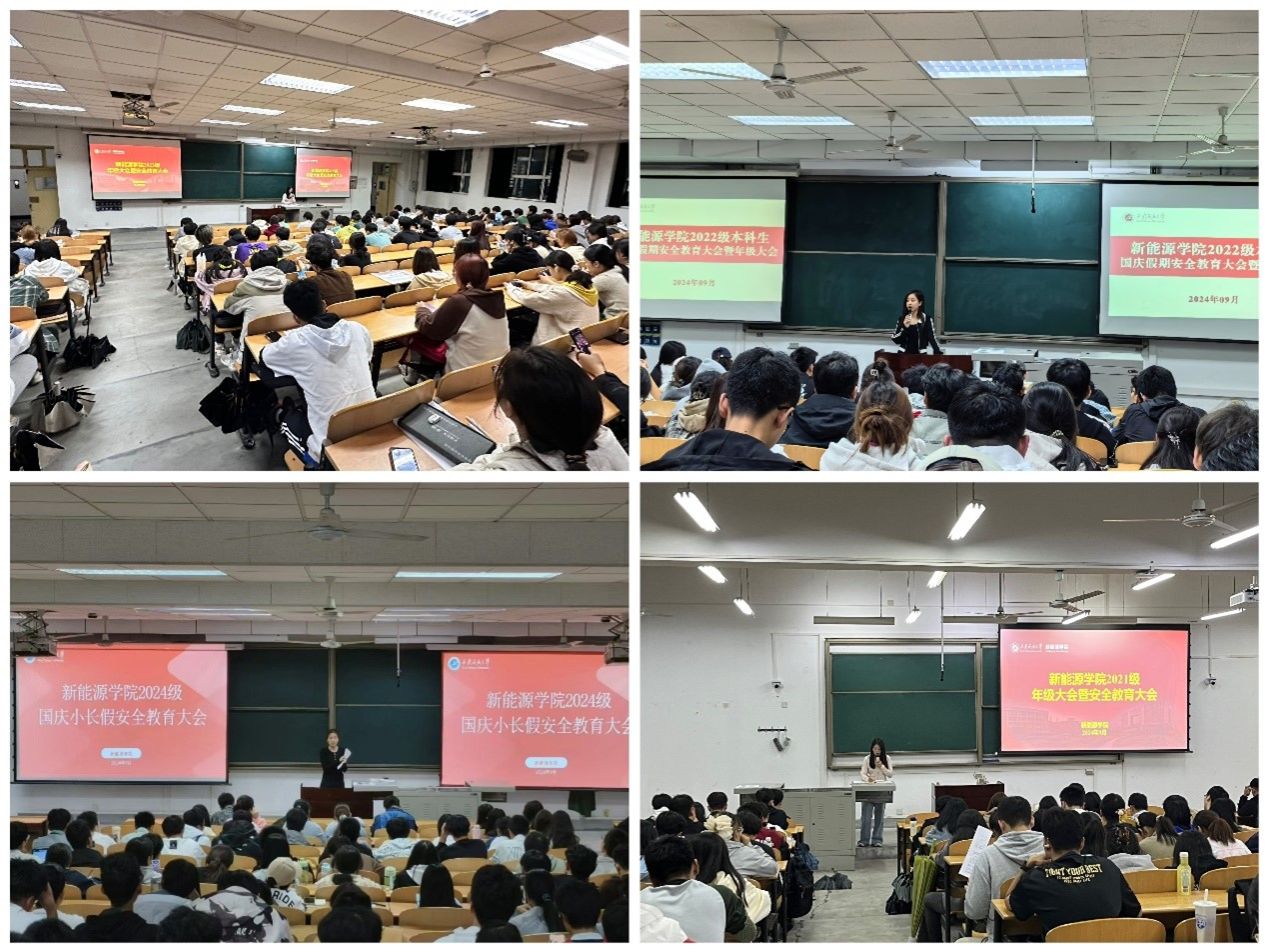 ——全面安全教育。29日,各年級(jí)相繼組織召開(kāi)年級(jí)/班級(jí)安全教育大會(huì)。輔導(dǎo)員和班主任重點(diǎn)圍繞消防安全、交通安全、校園安全、網(wǎng)絡(luò)安全、人身安全和心理安全等方面對(duì)學(xué)生進(jìn)行安全教育,結(jié)合校園案例和實(shí)用安全知識(shí),引導(dǎo)學(xué)生增強(qiáng)自我保護(hù)意識(shí),避免潛在危險(xiǎn)。輔導(dǎo)員還組織全體學(xué)生簽署了《新能源學(xué)院國(guó)慶假期安全承諾書(shū)》和《新能源學(xué)院國(guó)慶假期去向登記表》,全面掌握假期學(xué)生動(dòng)向。
