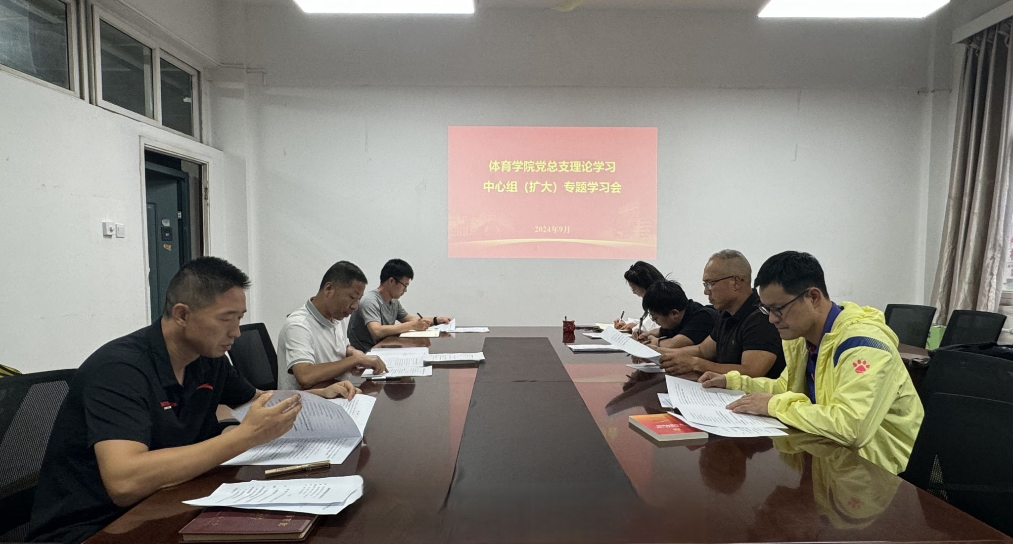 9月29日下午,體育學(xué)院黨總支在雁塔校區(qū)華油能源樓733會(huì)議室召開理論學(xué)習(xí)中心組(擴(kuò)大)學(xué)習(xí)會(huì),學(xué)院理論學(xué)習(xí)中心組成員及辦公室主任、教學(xué)辦公室主任參加會(huì)議。會(huì)議由學(xué)院黨總支書記茍毅飛主持。