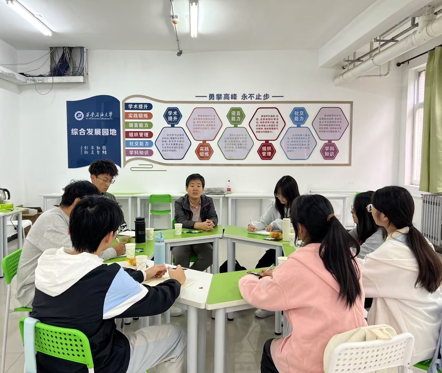 為增進同學們對學科競賽的了解,鼓勵學生積極參加學科競賽,10月11日上午,化學化工學院在“一站式”學生社區(qū)——“綜合發(fā)展園地”舉辦第五期“教授下午茶”活動。本期活動邀請到化學化工系劉菊榮老師做客,2023級學生代表參加。本次活動由學院2023級輔導員艾麗彼熱·艾爾肯主持。