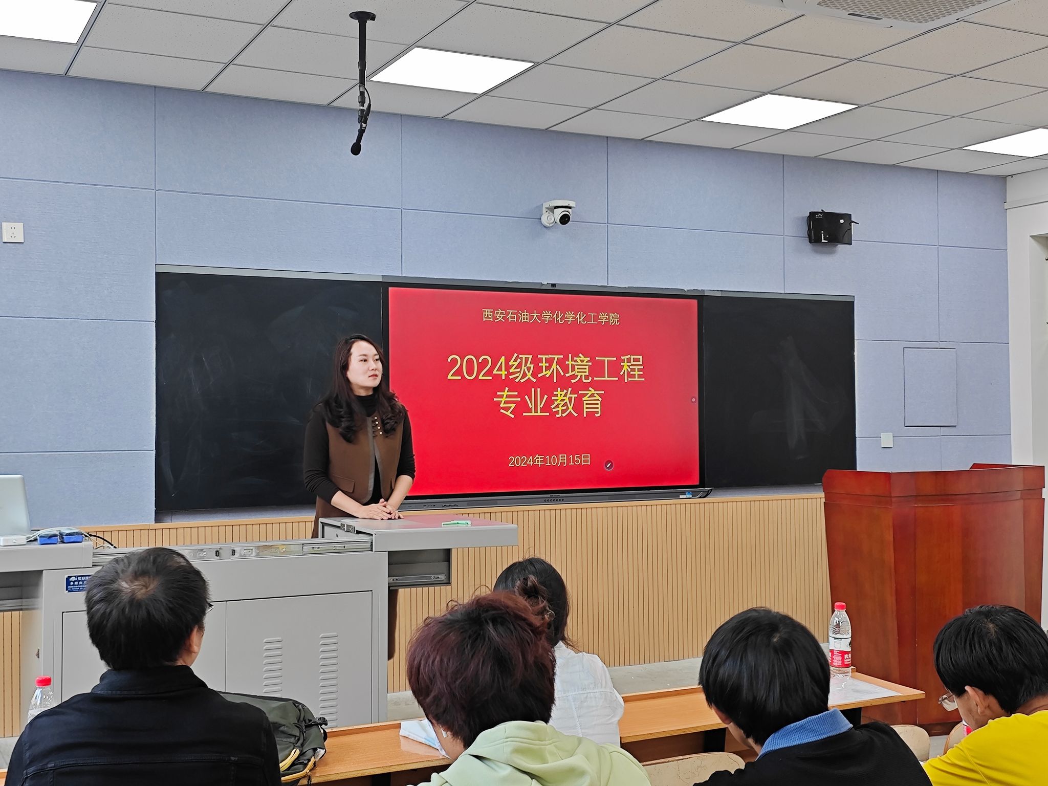 為進(jìn)一步增強(qiáng)2024級(jí)環(huán)境工程專業(yè)新生學(xué)習(xí)信心,深入了解專業(yè)領(lǐng)域,充分理解專業(yè)優(yōu)勢(shì)及發(fā)展方向,10月15日下午,化學(xué)化工學(xué)院在鄠邑校區(qū)A103教室召開(kāi)環(huán)境工程第二場(chǎng)專業(yè)教育大會(huì)。環(huán)境工程系于恒和張榕老師擔(dān)任主講人,環(huán)境工程系教師魚(yú)濤、盧聰以及2024級(jí)全體環(huán)境專業(yè)新生參加本次教育大會(huì)。會(huì)議由2024級(jí)輔導(dǎo)員王蓉主持。