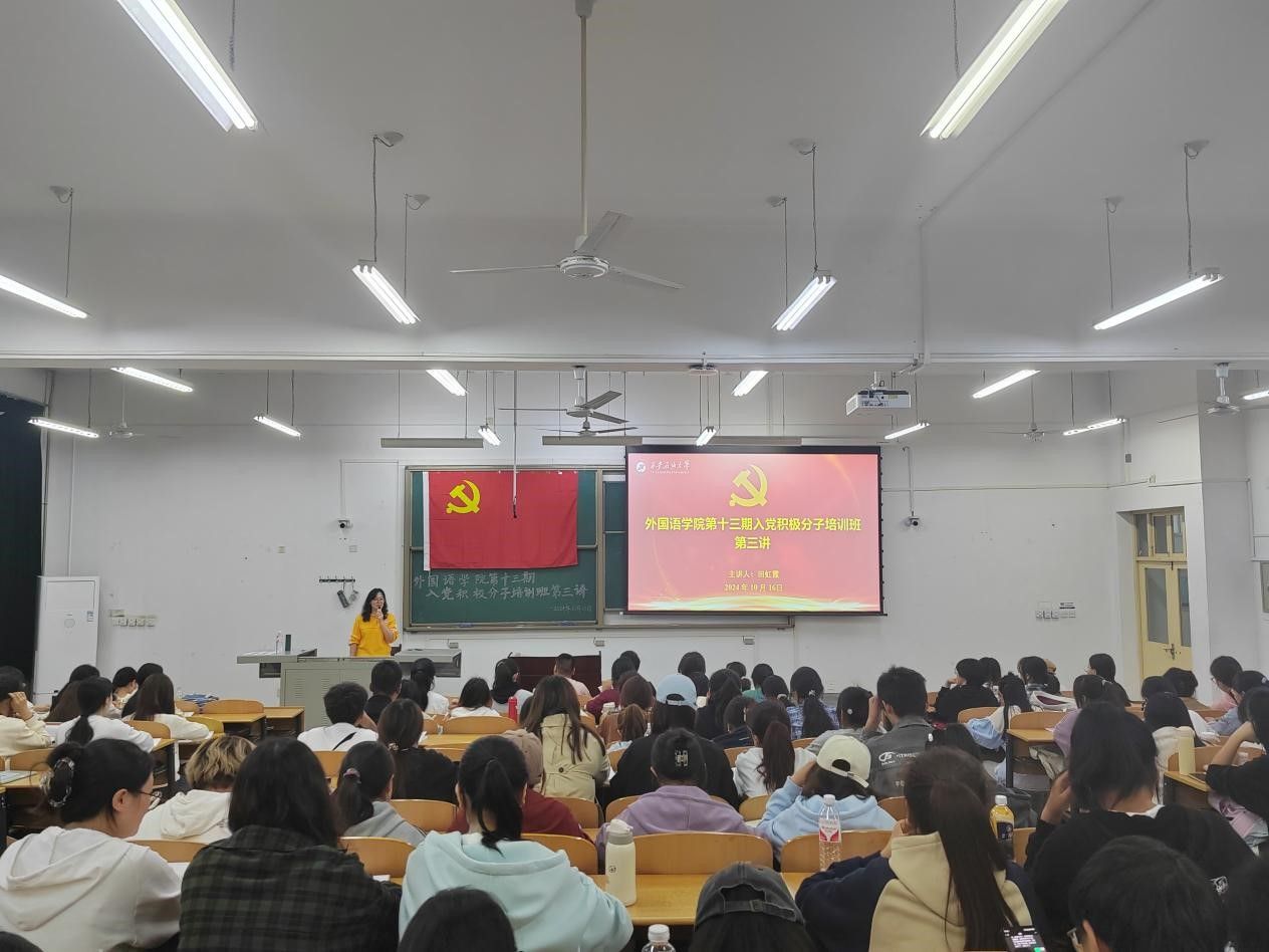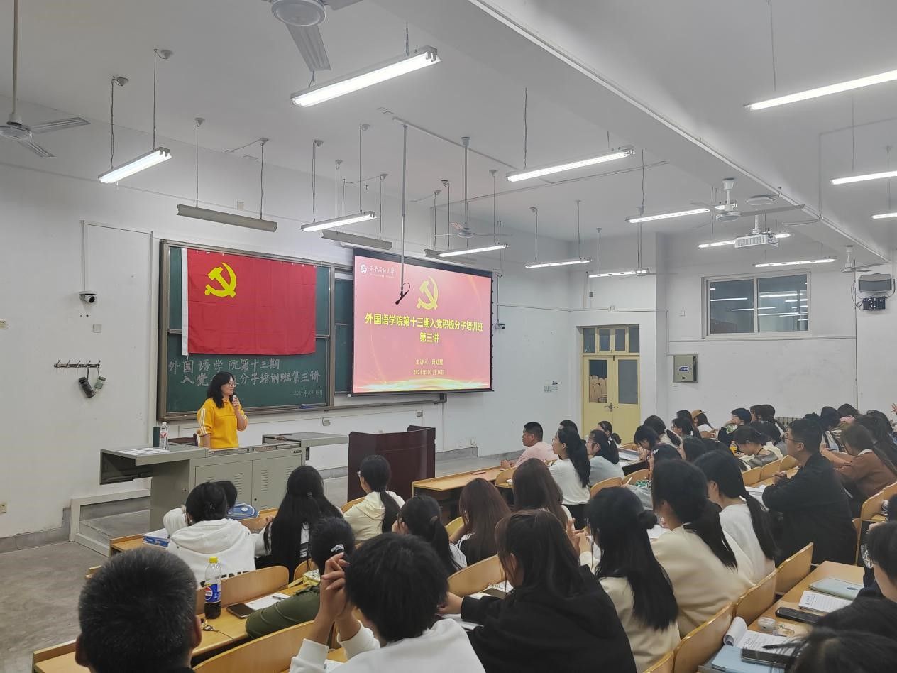 為扎實(shí)做好入黨積極分子的培養(yǎng)教育工作,提高入黨積極分子的思想政治素養(yǎng),確保黨員的發(fā)展質(zhì)量。10月16日晚,外國(guó)語(yǔ)學(xué)院在鄠邑校區(qū)博思樓B114教室舉行第十三期入黨積極分子培訓(xùn)班第三次集中授課。校黨委研究生工作部部長(zhǎng)田虹霞應(yīng)邀擔(dān)任主講。