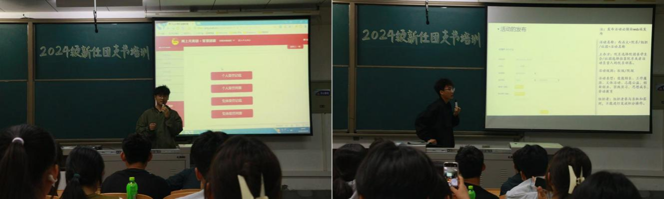 為進一步加強基層團組織建設(shè),提升2024級本科新任團支部書記工作能力,10月15日晚,校團委于鄠邑校區(qū)博覽樓A134教室舉辦2024級本科新任團支部書記培訓(xùn)。本次培訓(xùn)由校團委副書記孫浩哲,校團委組織部負責(zé)人吳俊杰同學(xué)、第二課堂運營中心負責(zé)人袁藝軍同學(xué)主講,全校2024級本科班級團支部書記參加培訓(xùn)。