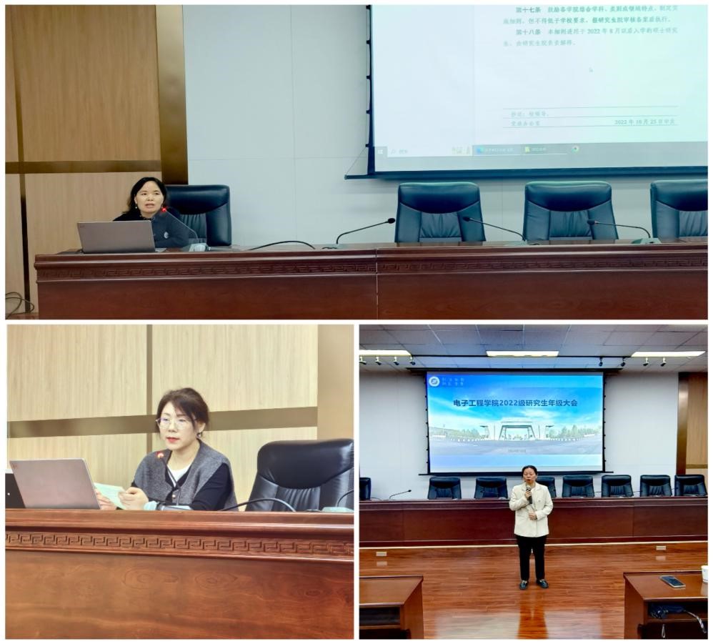 10月17日下午,電子工程學院在雁塔校區(qū)西階第五會議室召開2022級研究生大會。學校就業(yè)創(chuàng)業(yè)指導中心干事馬丁、副院長楊一、科研與研究生辦公室主任趙驕楊、教學秘書張小妹、科研秘書楊琳參加會議。會議由研究生輔導員李君主持。