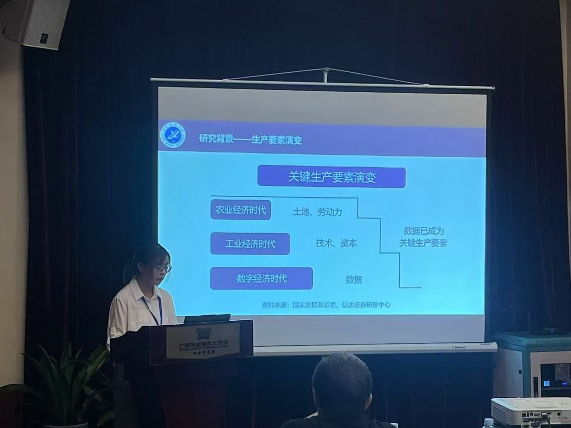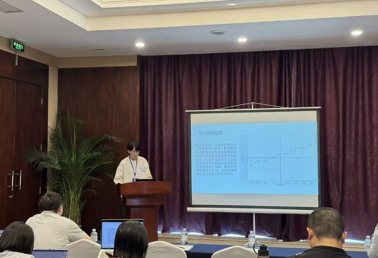 趙花花同學作了題為《數(shù)據(jù)要素市場化如何影響企業(yè)綠色全要素生產(chǎn)率——基于數(shù)據(jù)交易平臺的準自然實驗》的專題報告。該研究基于新發(fā)展理念的指導從綠色視角出發(fā)剖析數(shù)據(jù)要素市場化對企業(yè)綠色全要素生產(chǎn)率的影響。