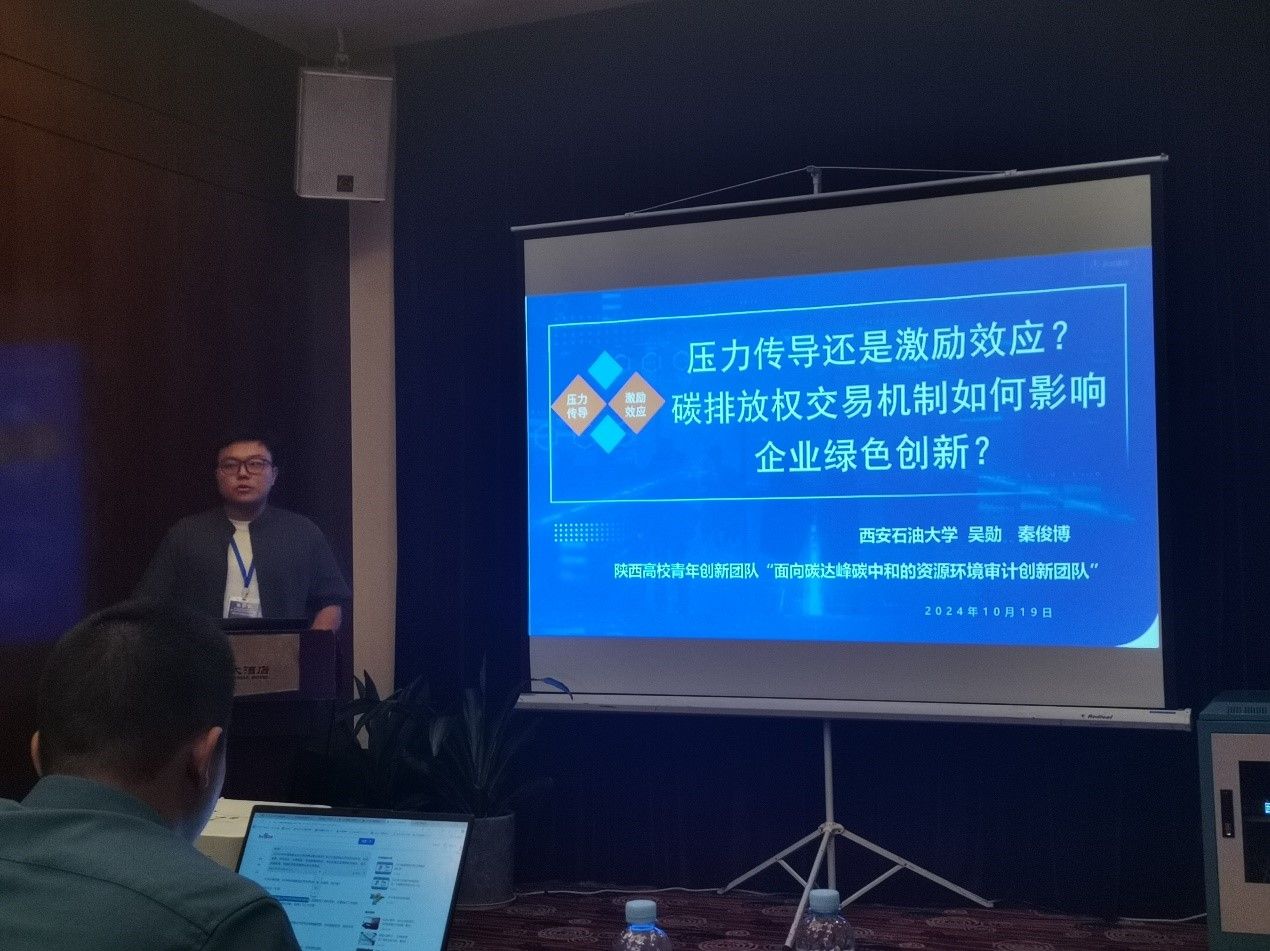 秦俊博同學作了題為《壓力傳導還是激勵效應?碳排放權(quán)交易機制如何影響企業(yè)綠色創(chuàng)新》的專題報告。該報告以試點省市A股上市公司為研究樣本,通過多時點雙重差分法,實證檢驗了碳排放權(quán)交易機制對企業(yè)綠色創(chuàng)新的影響,并通過激勵效應和壓力傳導兩個維度研究了碳排放權(quán)交易機制綠色創(chuàng)新效應的作用路徑。