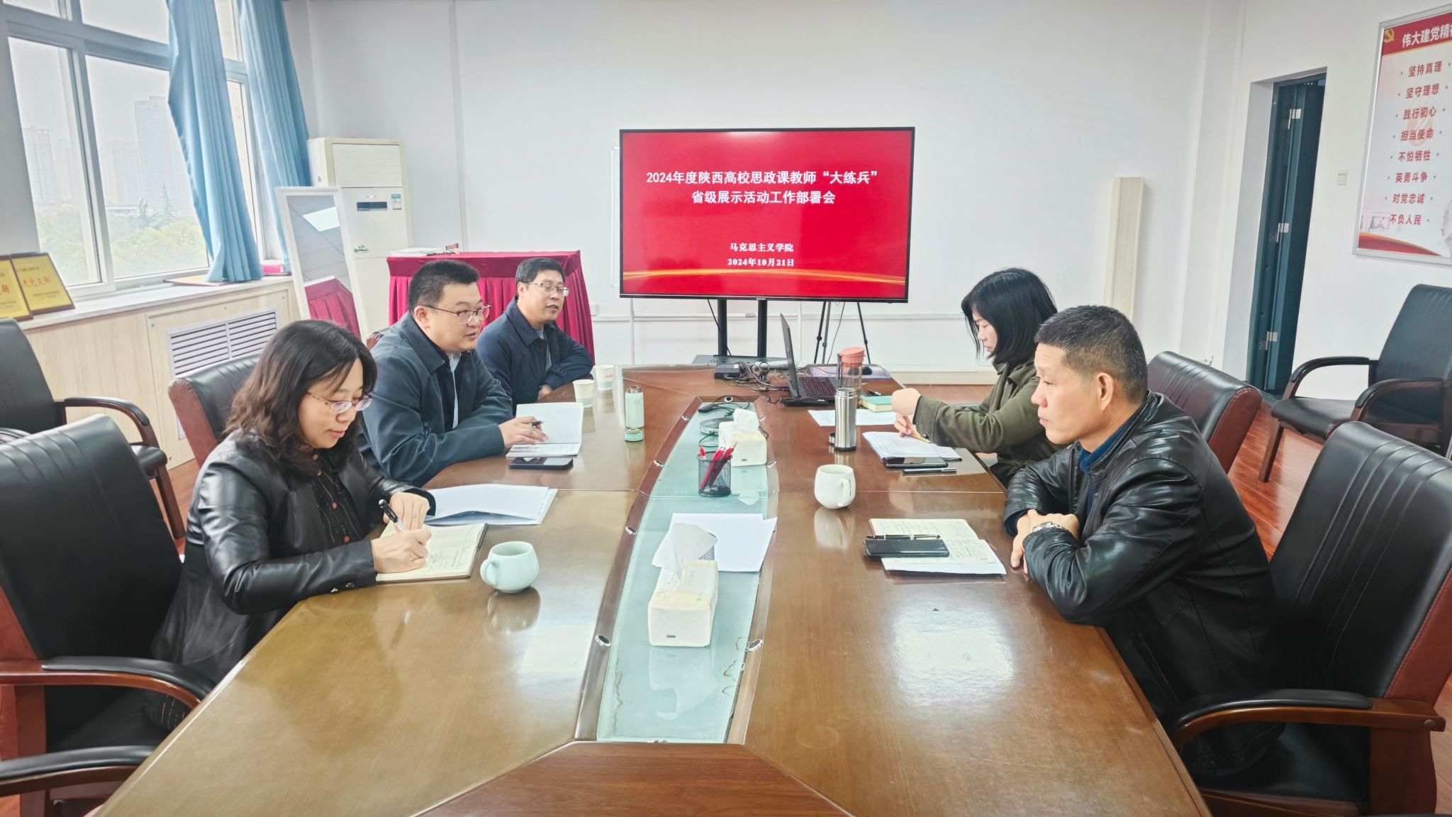 10月21日上午,馬克思主義學院召開2024年度陜西省高校思政課教師“大練兵”省級展示活動工作部署會,學院領導班子成員,兩次全國高校思想政治理論課教學展示獲獎教師左玲參加會議,會議由張海濤院長主持。
