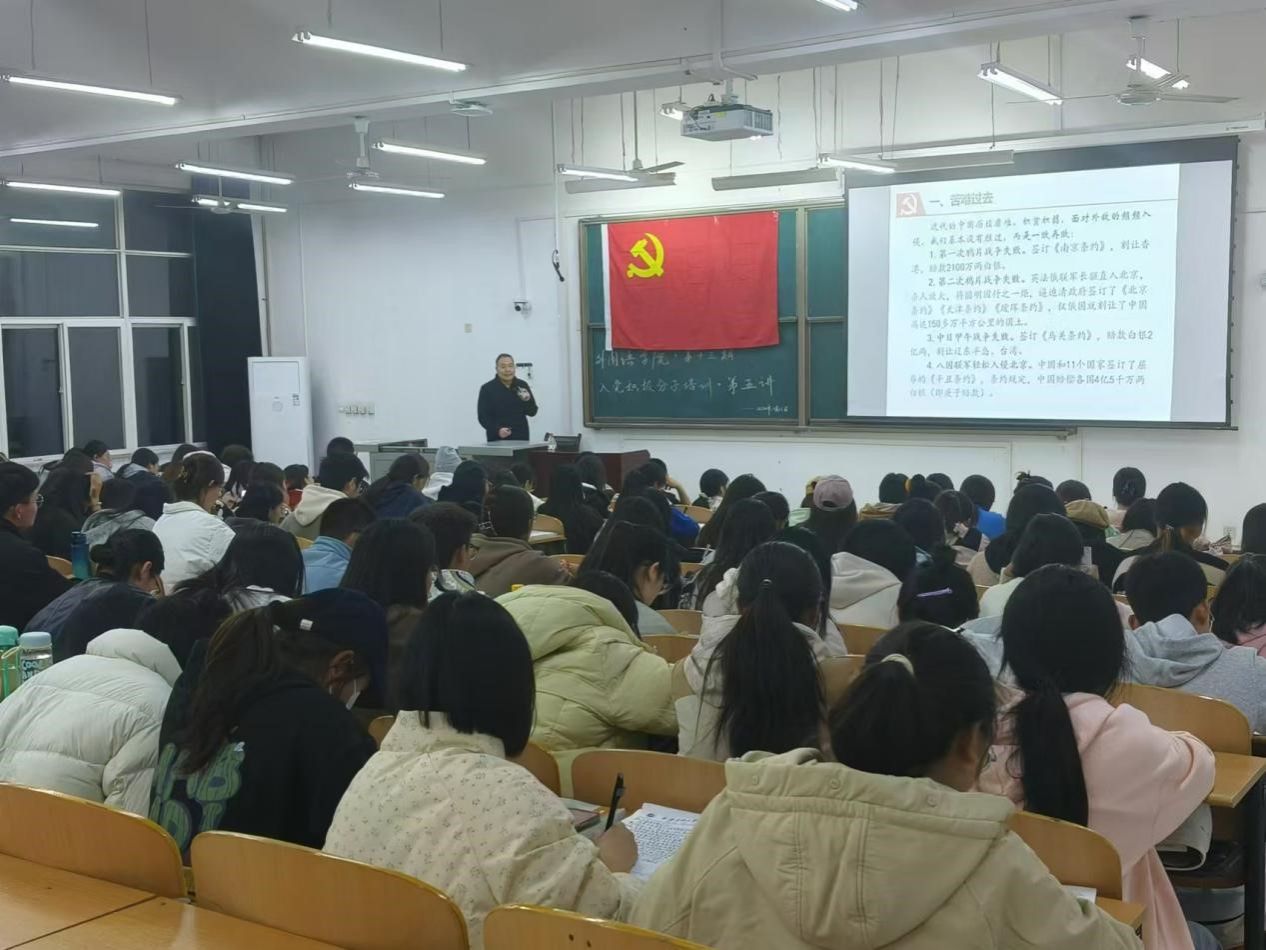 齊仲鋒以“從百年滄桑到大國崛起”為題,從苦難過去、艱難探索、根源剖析、輝煌成就、愿景對比五個方面,闡述了近代中國的發(fā)展歷程以及中華民族救亡圖存、救國救民的真理和路徑,重點(diǎn)講述了在中國共產(chǎn)黨的正確領(lǐng)導(dǎo)下,近代中國所發(fā)生的重要轉(zhuǎn)折以及取得的輝煌成就。強(qiáng)調(diào)了中國崛起的根本出路是中國特色社會主義道路,中國特色社會主義的本質(zhì)特征是中國共產(chǎn)黨的領(lǐng)導(dǎo),正因中國共產(chǎn)黨的誕生,全國各族人民才能緊密團(tuán)結(jié)在中國共產(chǎn)黨的領(lǐng)導(dǎo)下,形成強(qiáng)大的革命和建設(shè)洪流,推動中國迅速崛起并逐步走入世界政治舞臺的中央。他希望全體入黨積極分子能夠持續(xù)而深刻地學(xué)習(xí)黨的基本知識,牢固樹立共產(chǎn)主義遠(yuǎn)大理想和中國特色社會主義堅定信念,增強(qiáng)“四個意識”,堅定“四個自信”,做到“兩個維護(hù)”,不斷在實現(xiàn)中國式現(xiàn)代化的征程上書寫青春華章。