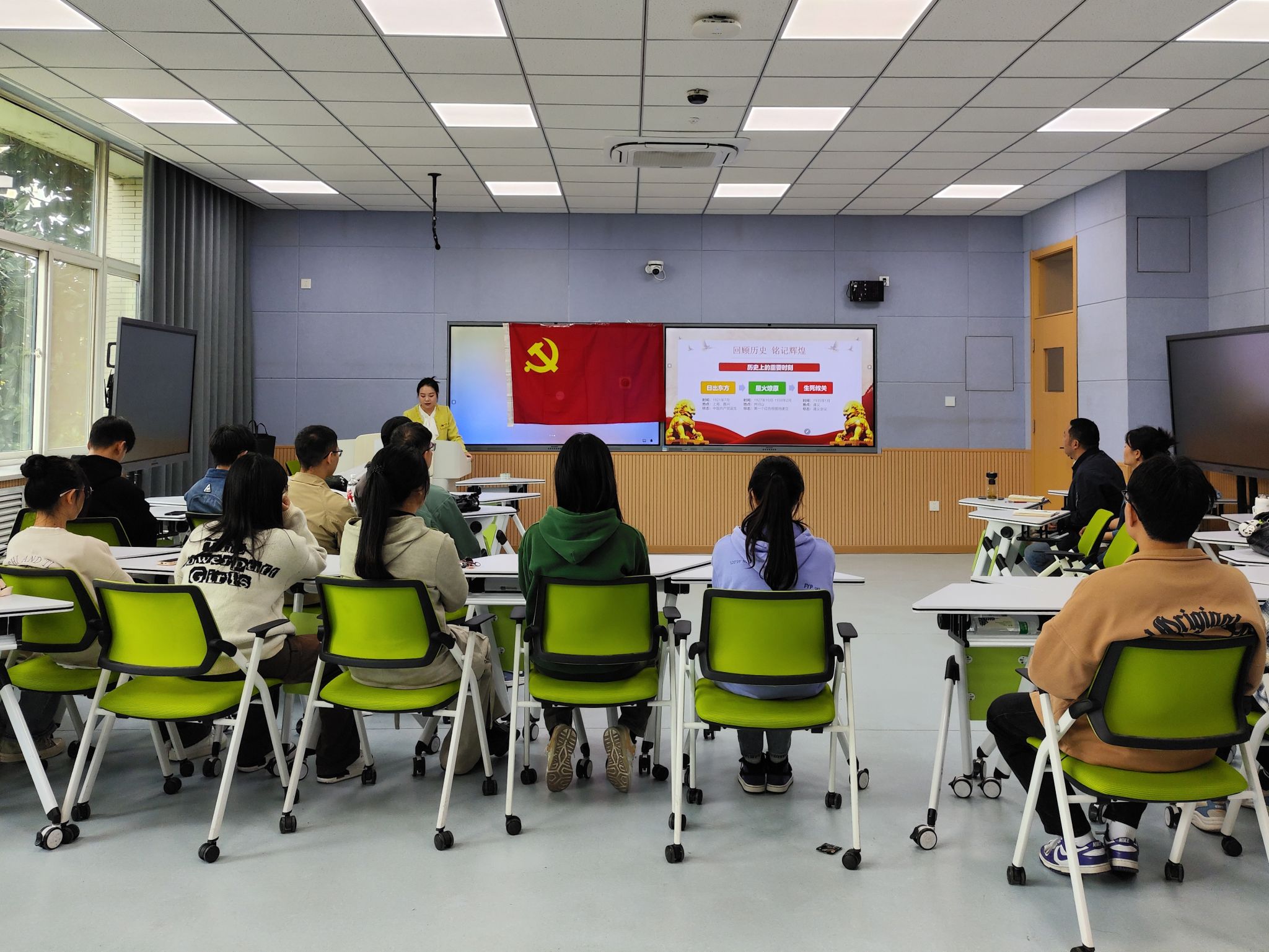 10月25日,計(jì)算機(jī)學(xué)院2024級(jí)計(jì)算機(jī)技術(shù)研究生黨支部在鄠邑校區(qū)博覽樓A117教室召開(kāi)了“重走征程頌黨史 共享盛世賀華章”的主題黨日活動(dòng)。校黨委學(xué)生工作部副部長(zhǎng)馬小剛同志到會(huì)指導(dǎo),學(xué)院學(xué)工辦主任喬曉同志、支部全體黨員同志及入黨積極分子共計(jì)20人參加活動(dòng)?;顒?dòng)由2024級(jí)計(jì)算機(jī)技術(shù)研究生黨支部書記張欣怡同學(xué)主持。