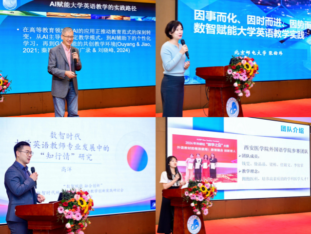 會議期間,多位專家教授圍繞數(shù)智時代英語教學(xué)的創(chuàng)新展開了深入探討。南京大學(xué)王海嘯教授作了題為《生成式人工智能在大學(xué)英語教學(xué)中應(yīng)用的理論與實踐研究》的專題報告,深入分析了生成式人工智能在英語教學(xué)中的應(yīng)用前景及其對教學(xué)方法的革新意義;北京郵電大學(xué)張鈁煒教授則以《因事而化、因時而進(jìn)、因時而新:數(shù)智賦能大學(xué)英語教學(xué)實踐》為主題,探討了如何在數(shù)智時代靈活調(diào)整教學(xué)方法,提升大學(xué)英語教學(xué)的實效性和適應(yīng)性。此外,與會其他專家也圍繞智能技術(shù)賦能教學(xué)、跨學(xué)科融合創(chuàng)新、教師專業(yè)發(fā)展等話題分享了寶貴的實踐經(jīng)驗和理論成果,為與會者帶來了豐富的啟發(fā)和視角。