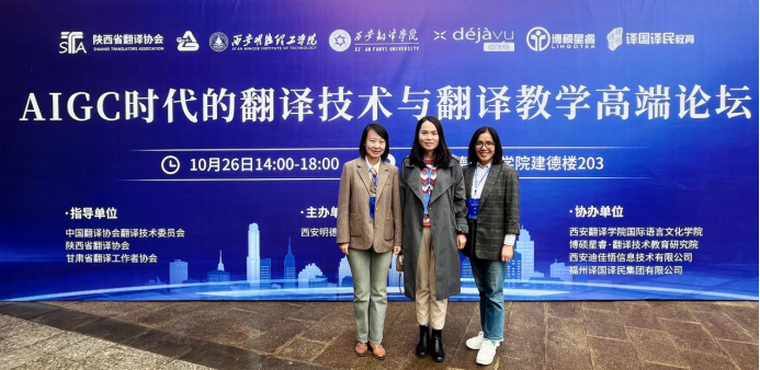 “AIGC時代的翻譯技術與翻譯教學”高端論壇于10月26日在西安成功舉辦,本次論壇由中國翻譯協(xié)會翻譯技術委員會、陜西省翻譯協(xié)會及甘肅省翻譯工作者協(xié)會指導,西安明德理工學院語言文化傳播學院主辦,西安翻譯學院國際語言文化學院、博碩星睿翻譯技術教育研究院、西安迪佳悟信息技術有限公司及福州譯國譯民集團有限公司協(xié)辦。此次論壇匯聚了來自翻譯技術與教學領域的知名專家學者,外國語學院教師原愛紅、李芳蕾、拓葳參加了本次論壇。