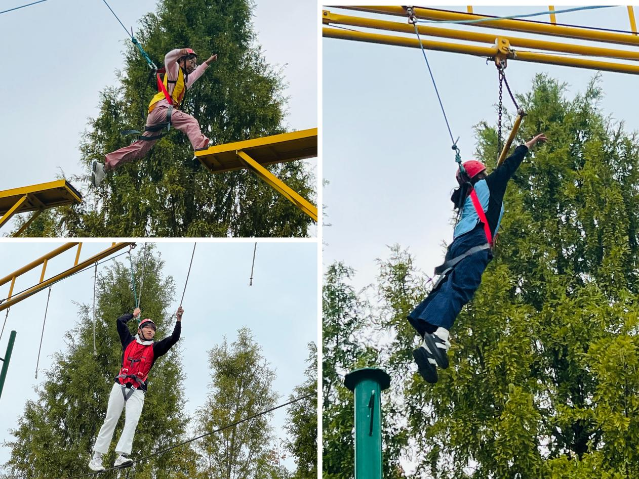 在高空項目體驗中,參與同學(xué)根據(jù)分組分別進行了“斷橋飛躍”、“高空滑索”和“鋼絲行走”三個項目。通過隊友的鼓勵和自身的突破,所有同學(xué)由開始的恐懼、畏縮,逐漸堅定意志,順利的克服了心里障礙。當(dāng)最后一位同學(xué)完成挑戰(zhàn)時,大家不禁發(fā)出了勝利的歡呼,有些同學(xué)還激動地流下了眼淚。同學(xué)們紛紛表示,隊友的鼓勵以及個人對團隊保護人員的信任促使了勇氣的形成。
