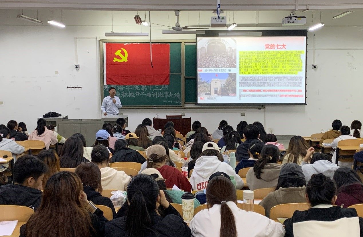 10月29日晚,外國語學(xué)院在鄠邑校區(qū)博思樓B221教室舉辦第十三期入黨積極分子培訓(xùn)班第九講。外國語學(xué)院黨委副書記王業(yè)青應(yīng)邀擔(dān)任主講,學(xué)院2024年全體入黨積極分子參加培訓(xùn)。