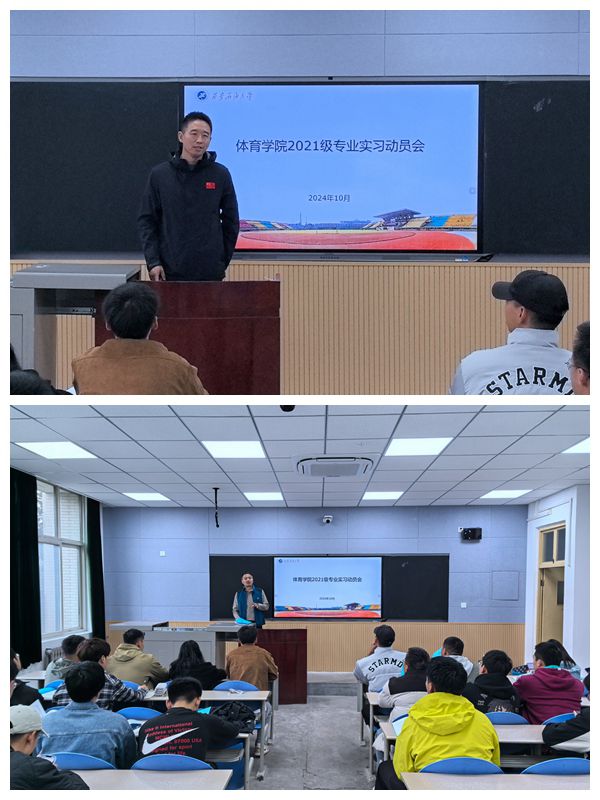 匠心引領(lǐng),逐夢(mèng)啟航。10月29日下午,學(xué)院在鄠邑校區(qū)博覽樓A217教室召開了2021級(jí)專業(yè)實(shí)習(xí)動(dòng)員會(huì)。會(huì)議伊始,胥山老師首先代表學(xué)院向即將踏上實(shí)習(xí)征程的同學(xué)們表示熱烈祝賀和殷切期望。他談到,實(shí)習(xí)是理論知識(shí)與實(shí)踐技能相結(jié)合的關(guān)鍵環(huán)節(jié),對(duì)于提升同學(xué)們的專業(yè)素養(yǎng)和綜合能力具有重要意義。隨后,李壽邦院長(zhǎng)從思想教育的角度出發(fā),對(duì)同學(xué)們進(jìn)行了深刻的實(shí)習(xí)動(dòng)員。他指出,實(shí)習(xí)期間同學(xué)們的身份不僅是學(xué)生,更是體育精神的傳播者和體育事業(yè)的接班人,希望同學(xué)們能夠保持良好的品德修養(yǎng),展現(xiàn)體育人的風(fēng)采,與實(shí)習(xí)單位建立和諧的合作關(guān)系,為學(xué)院爭(zhēng)光,為體育事業(yè)添磚加瓦。隨后,李壽邦院長(zhǎng)向?qū)W生們強(qiáng)調(diào)了安全的重要性,要求同學(xué)們時(shí)刻保持警惕,確保實(shí)習(xí)工作的順利進(jìn)行。會(huì)議最后,輔導(dǎo)員張澤正向?qū)W生解讀了實(shí)習(xí)工作的具體安排和注意事項(xiàng),并組織學(xué)生填寫了實(shí)習(xí)期間安全承諾書。
