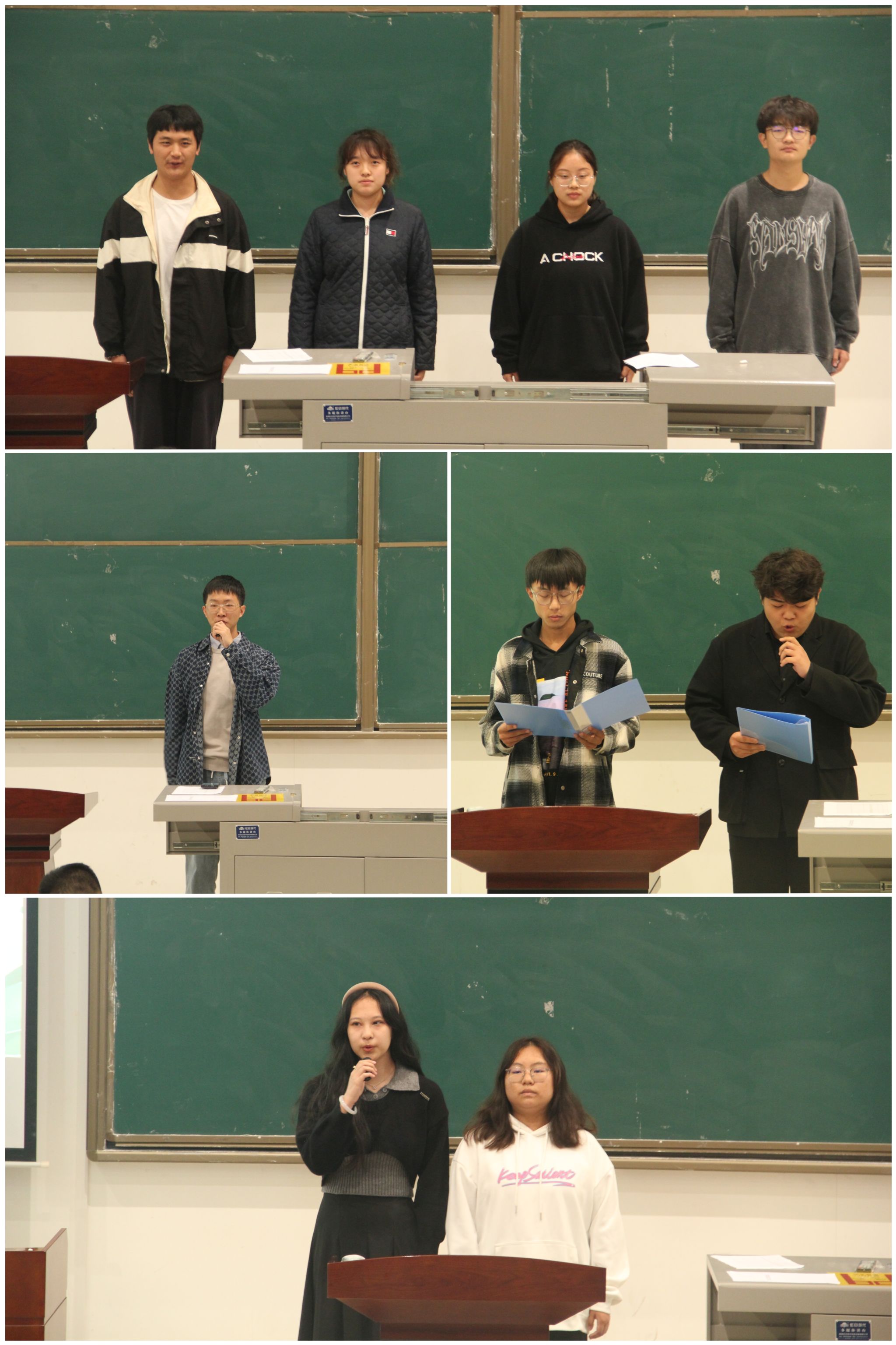 比賽過程中,選手們或娓娓道來或慷慨激昂,圍繞“誦讀經(jīng)典、閱享人生”主題,內(nèi)容積極向上、作品形式多樣,積極唱響新時(shí)代主旋律。精彩的展示使臺(tái)下聽眾深受感染,不斷響起熱烈的掌聲。經(jīng)過激烈角逐,地信2402班《百年滄桑》與勘探2401班《致橡樹》脫穎而出,將代表我院參加“秋之韻”詩文配樂朗誦校級(jí)比賽。