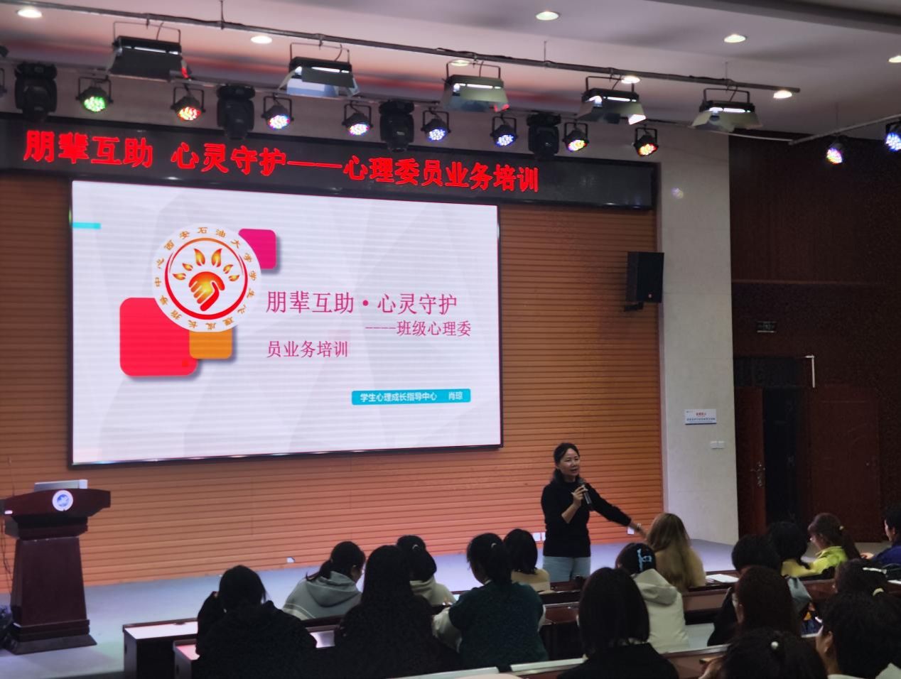 10月30日晚上7:30,學(xué)生心理成長(zhǎng)指導(dǎo)中心主任肖瓊在鄠邑校區(qū)崇文樓118報(bào)告廳為全體2024級(jí)本科生和研究生班級(jí)心理委員及新任職心理委員們做了主題為“朋輩互助、心靈守護(hù)”的業(yè)務(wù)培訓(xùn)。