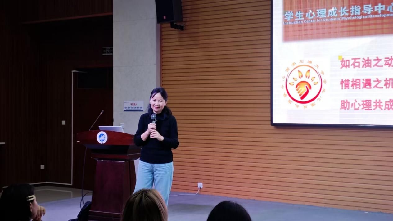 培訓(xùn)活動(dòng)以“握手”、“言歡”熱身開(kāi)場(chǎng),活躍了現(xiàn)場(chǎng)培訓(xùn)氣氛,大家進(jìn)入了比較輕松愉悅的狀態(tài)。隨后,肖瓊老師介紹了“油緣”心理的“如石油之動(dòng)力、惜相遇之機(jī)緣、助心理共成長(zhǎng)”的文化理念,學(xué)生心理成長(zhǎng)指導(dǎo)中心的場(chǎng)地、設(shè)備、人員及咨詢預(yù)約方等。