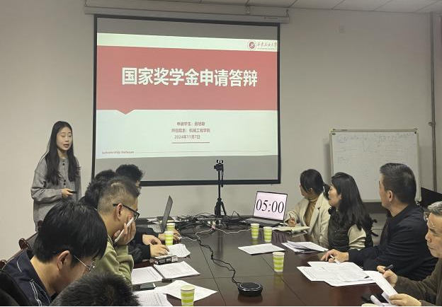首先,研究生輔導(dǎo)員歐紅娟介紹了學(xué)院2024年第二批國家獎學(xué)金評審答辯前相關(guān)工作,并向參加答辯的學(xué)生介紹答辯流程及評審細(xì)則。按照相關(guān)工作要求,經(jīng)前期學(xué)生本人申請、資格審核、成果量化等環(huán)節(jié),共有來自2022級的10名研究生按照抽簽順序依次從思想表現(xiàn)、學(xué)業(yè)情況、學(xué)術(shù)科研以及參加社會實(shí)踐等方面進(jìn)行了匯報展示,就評委的提問作出相應(yīng)回答。最終確定左王印等5名同學(xué)為機(jī)械工程學(xué)院2024年第二批研究生國家獎學(xué)金擬推薦人選并進(jìn)行公示。
