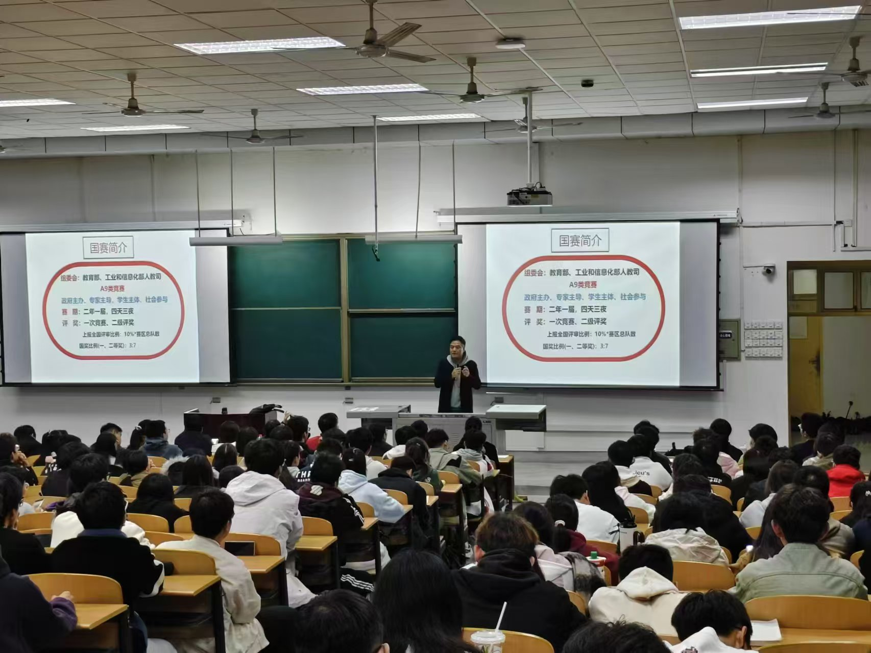 為深入貫徹我校第三次黨代會(huì)精神,落實(shí)“鑄魂育人”行動(dòng),全面提高拔尖創(chuàng)新人才培養(yǎng)質(zhì)量,11月13日晚,電子工程學(xué)院在鄠邑校區(qū)博思樓234室召開2024年電子設(shè)計(jì)競(jìng)賽宣講會(huì)。學(xué)院副院長(zhǎng)任志平、電工電子實(shí)驗(yàn)教學(xué)中心主任宋陽、學(xué)生工作辦公室主任錢宇航、電子設(shè)計(jì)競(jìng)賽負(fù)責(zé)人劉健、學(xué)院各專業(yè)實(shí)驗(yàn)教師以及300余名學(xué)生參加宣講會(huì)。本次宣講會(huì)由實(shí)驗(yàn)教師顏瑾主持。