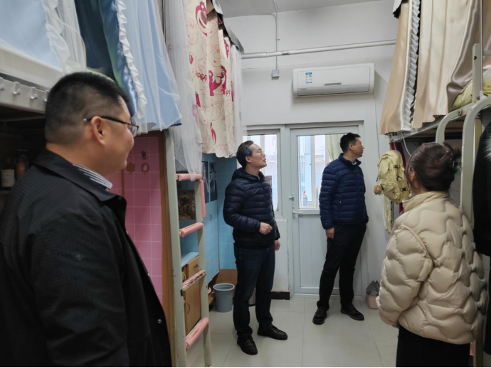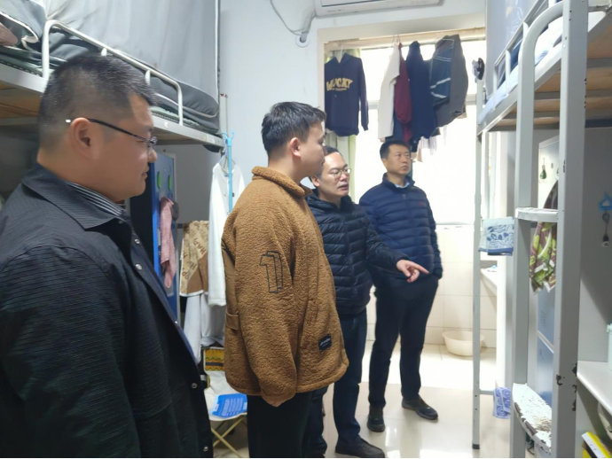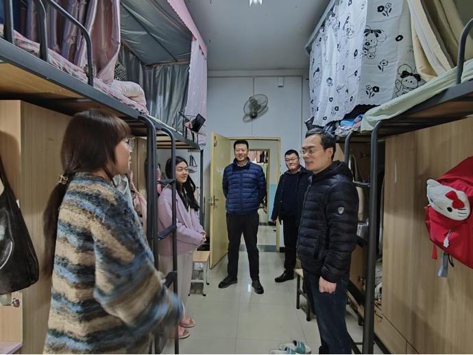 走訪過程中,張建高、陳武、邱嶺分別與同學們進行親切交談。從住宿飲食、生活習慣、發(fā)展規(guī)劃等多方面深入了解學生情況。耐心傾聽同學們的心聲,及時為學生們答疑解惑,解決問題。同時,提醒同學們在日常生活中要注重勞逸結(jié)合,鼓勵同學們在宿舍要相互關(guān)心,相互幫助,共同營造一個和諧、溫馨的寢室氛圍。