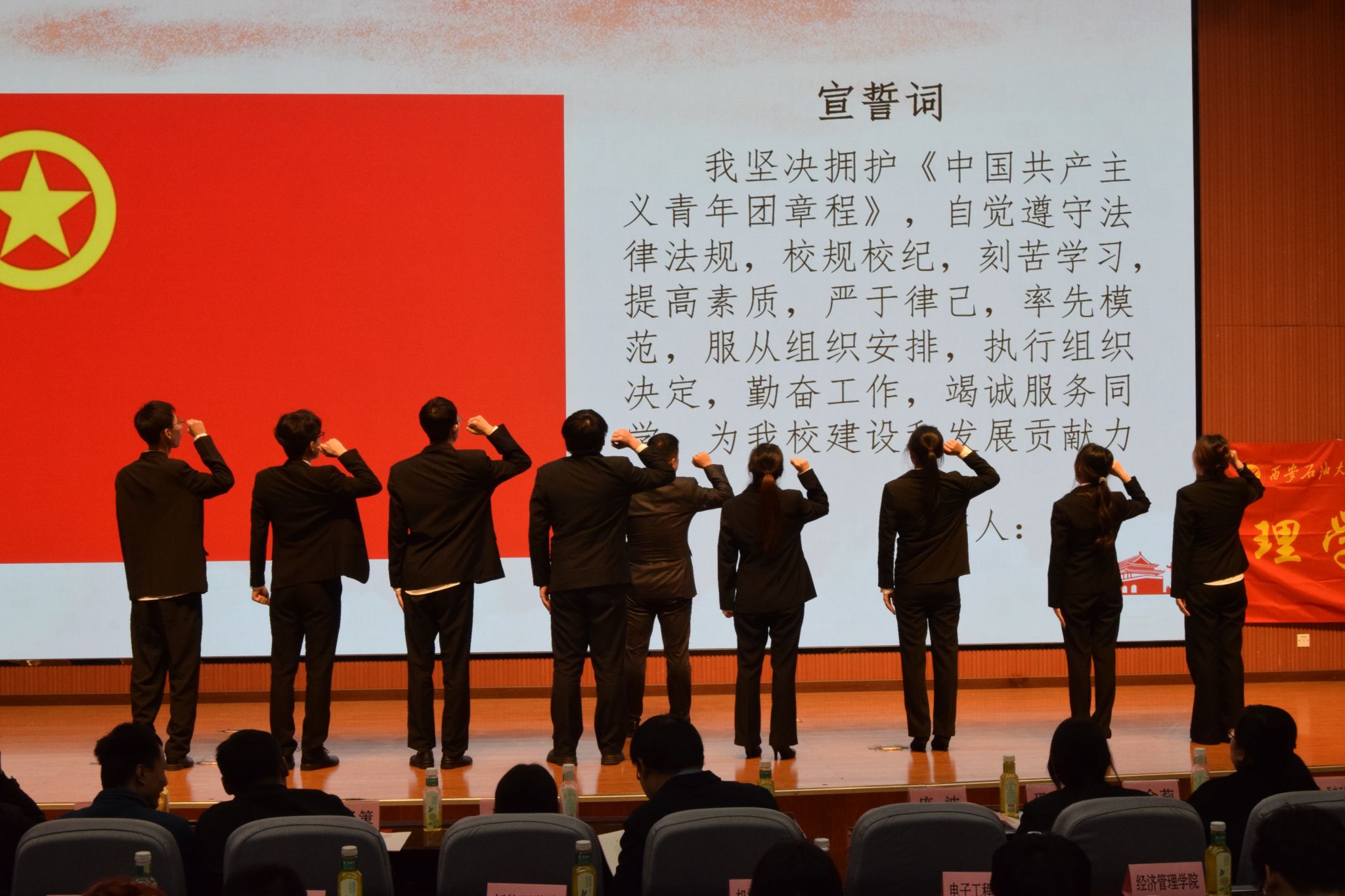 大會通過無記名投票,差額選舉方式順利選舉產(chǎn)生了理學院新任團委委員、新一屆學生委員會委員。理學院團委書記龐波帶領(lǐng)新當選的委員面向國旗莊嚴宣誓就職。