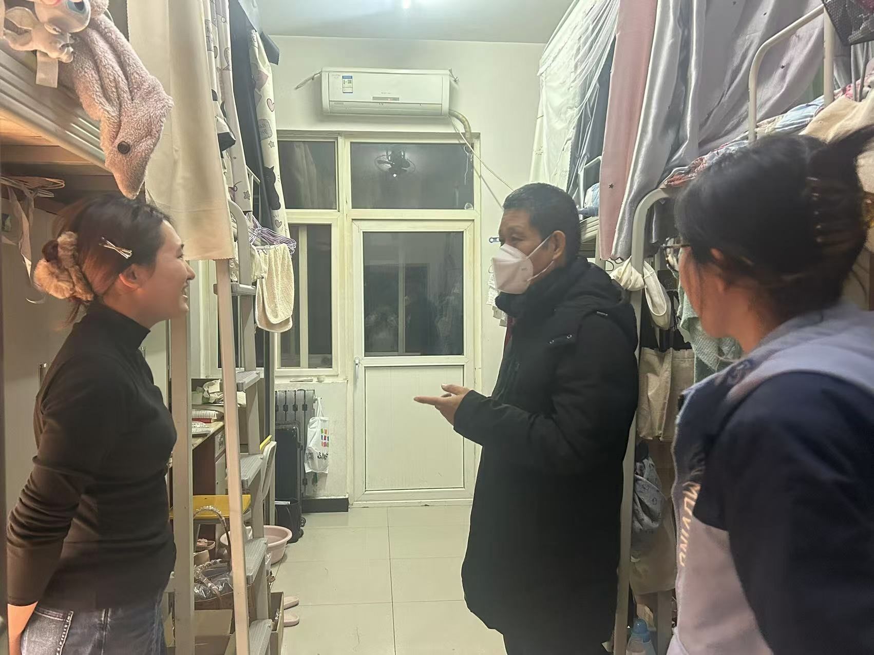 走訪過(guò)程中,袁通路與同學(xué)們進(jìn)行了親切的交談,詳細(xì)了解了學(xué)生的學(xué)習(xí)和生活情況,全面排查了學(xué)生的宿舍安全隱患,認(rèn)真聽(tīng)取了學(xué)生的各項(xiàng)訴求,鼓勵(lì)同學(xué)們認(rèn)真學(xué)習(xí)、快樂(lè)生活、積極上進(jìn)、不斷向前。